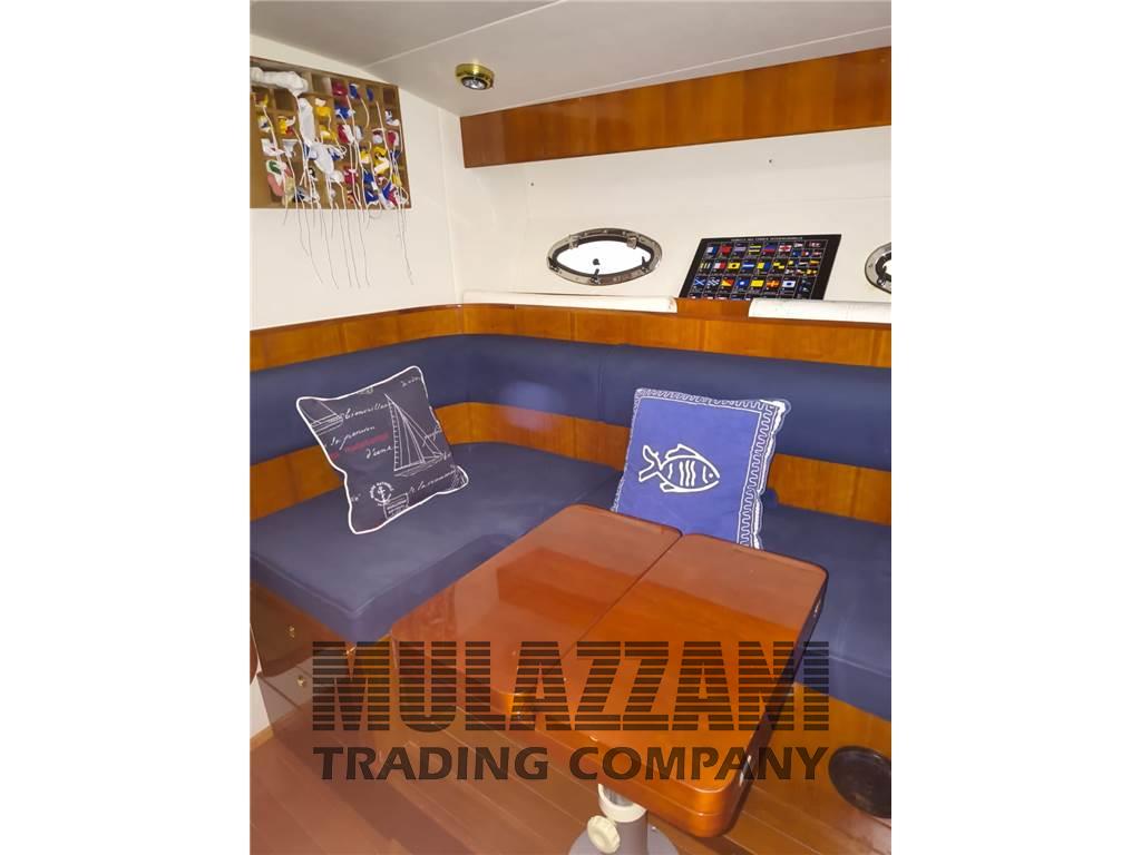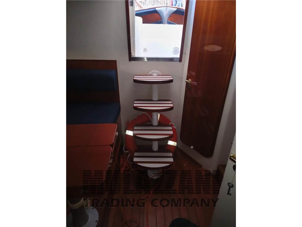 Altoparlanti, Barometro, Boiler (elettrico), Cassetta di pronto soccorso, Cucina, Cuscineria completa, Cuscineria di poppa, Cuscineria di prua, Cuscineria Pozzetto, Dotazioni di sicurezza entro 12 miglia, Fornello, Frigorifero esterno, Frigorifero interno, Giubbetti di salvataggio, Indicatore del serbatoio del carburante, Pavimento interno in legno, Prese interne 12v, Prese interne 220v, Salvagente anulare con cima munita di boetta luminosa, Stereo, Tendalino, WC marino elettrico, Zattera di salvataggio