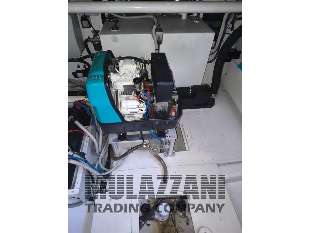 Allarme motore, Ancora, Autoclave, Batterie, Bussola, Caricabatterie, Colorazione speciale (scafo blu), Contamiglia, Display, Doccia esterna, 2 Flap idraulici, GPS, Indicatori Flaps, Lavandino nel Pozzetto, Passerella, Piattaforma, Pilota automatico, Pompa di sentina automatica, Pompa di sentina manuale, Porta ingresso, Pozzetto Teak, Presa 220V banchina, Raddrizzatore, Radio VHF, Salpa Ancore Elettrico, Scaletta da bagno