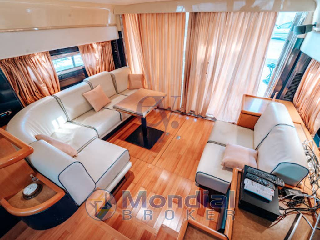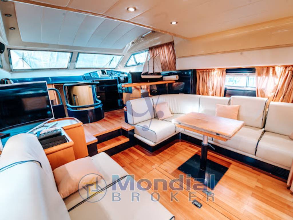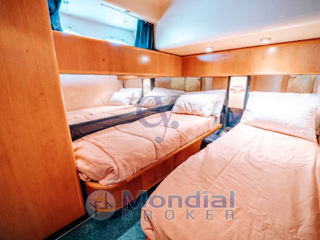 Allarme motore - Ancora - Autoclave - Auto-Trim - Caricabattene - Doccia esterna - Doppia timoneria (Fly) - Elica di prua - Flap idraulici - Gruette per tender (Uso passerella) - Impianto antincendio - Indicatori Flaps - Luci subacquee - Pompa di sentina manuale - Presa 220V banchina - Presa acqua banchina - Salpa Ancore Elettrico - Tromba - Winch tonneggio di prua - Aria condizionata (Hot/Cold) - Boiler - Cassaforte - Prese interne 220v - 2 WC marino elettrico - WC marino manuale - Altoparlanti (interni/Esterni) Digitale Terrestre - DVD - Stereo - TV - Frigorifero esterno (Flybridge) - Frigorifero interno - Microonde - Bimini (Fly) Cuscineria di prua - Cuscineria fly - Cuscineria Pozzetto - Teli copri finestra - Telo copriconsole