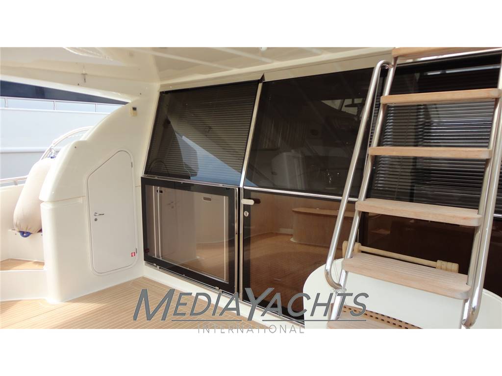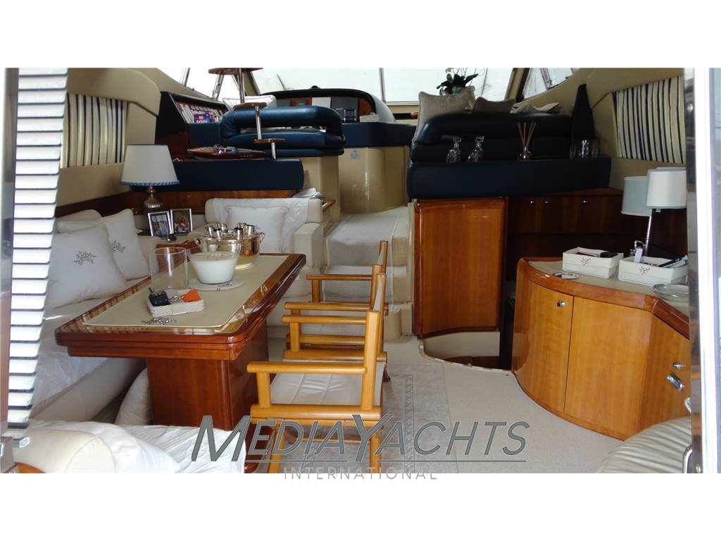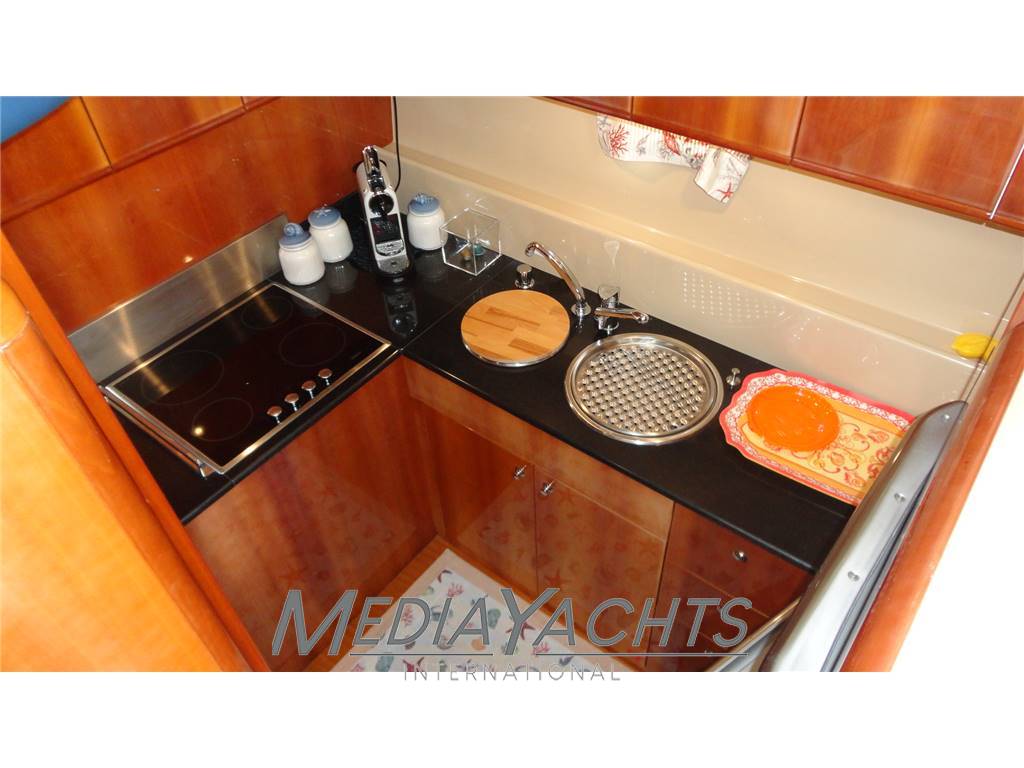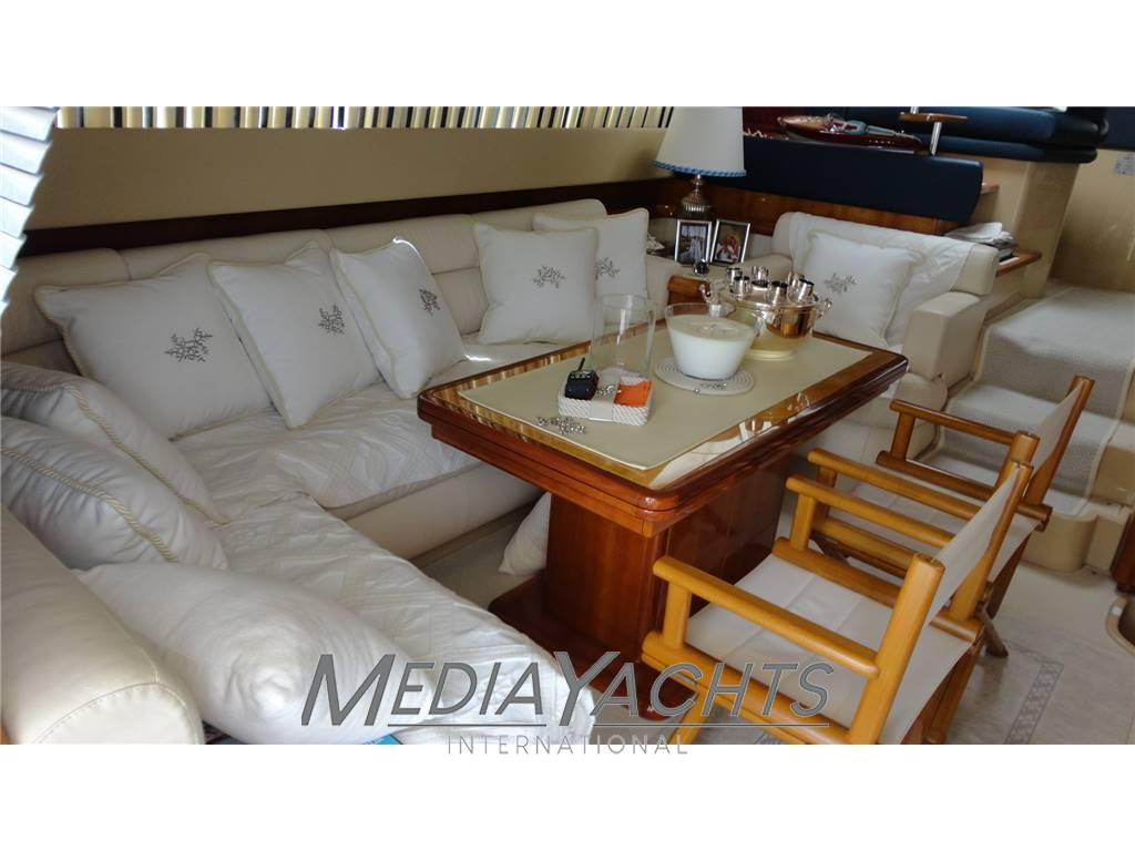 MASTER CABIN AMIDSHIP WITH DOUBLE BED, EN-SUITE BATHROOM WITH SINK, WC AND SHOWER - DOUBLE VIP CABIN IN THE FORWARD WITH DOUBLE BED AND EN-SUITE BATHROOM WITH SINK, WC AND SHOWER - DOUBLE GUEST CABIN WITH TWO TWIN BEDS AND EN-SUITE BATHROOM WITH SINK, WC AND SHOWER - SINGLE CREW CABIN WITH ACCESS FROM THE COCKPIT AND BATHROOM - TECHNICAL ROOM WITH ACCESS FROM THE GALLEY WITH WASHER/DRYER AND BATHROOM - SALOON WITH LEATHER SOFA, RECTANGULAR WOODEN TABLE + 2 CHAIRS AND OPPOSITE CABIN WITH LCD TV AND FRIDGE - ACCESS STAIRCASE TO THE FLY FROM THE SALOON - DINING AREA WITH LEATHER SEATING AND TABLE - GALLEY ON THE LOWER DECK WITH MARBLE TOP, GLASS CERAMIC HOB, FRIDGE, FREEZER, DISHWASHER AND COMBINATION OVEN + MICROWAVE - INTERIOR FURNITURE IN GLOSSY LACQUERED CHERRY WOOD - FLY WITH SOFA AND TABLE IN THE STERN AREA - SUNBATHING AREA WITH CUSHIONS - WET BAR CABINET WITH FRIDGE AND SINK
