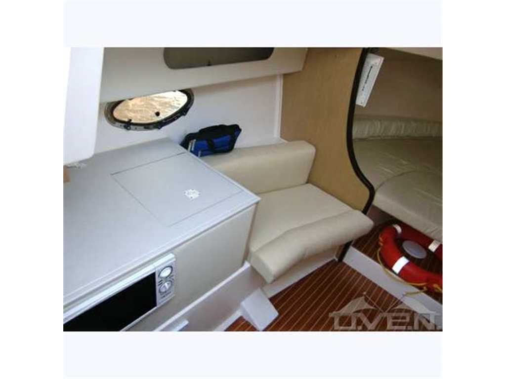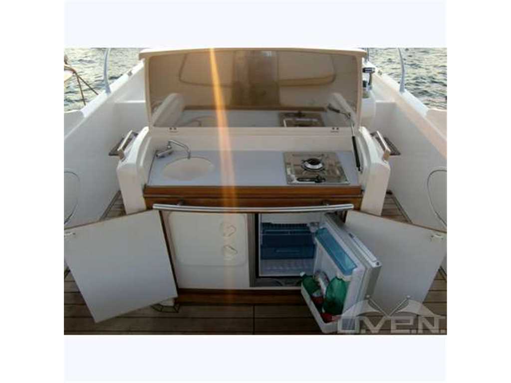 Elica di Prua Tendalino, raddrizzatore 220V, boiler, attacco acqua diretto, portaparapordi inox, teak interno, teak esterno, poggiapiedi inox/teak, flaps, sportello inox/plexiglass pozzetto, stereo, frigo, cucina esterna, luci cortesia pozzetto, VHF, ECO/GPS, presa 12V, telo consolle + sedile guida.