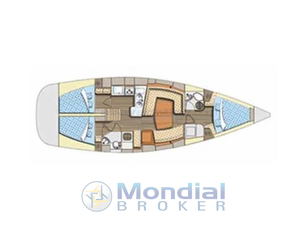 Elan 434 Impression usato. Layout: 3 cabine e 2 bagni con doccia separata nella cabina armatoriale.