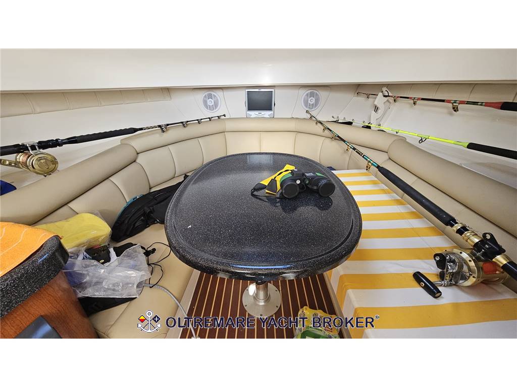 Il ponte di comando è dotato di un divano a sinistra per rilassarsi, e la seduta del timone è dotata di un cuscino ribaltabile per la guida in piedi.