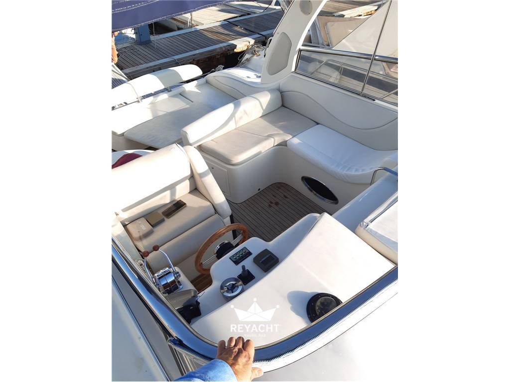 Ne è conferma questo bell'esemplare del 2006 blu/bianco,equipaggiato con una coppia di poderosi Volvo Penta/benzina,8 cilindri aspirati,scrupolosamente manutenuti e orgoglio dell'armatore.