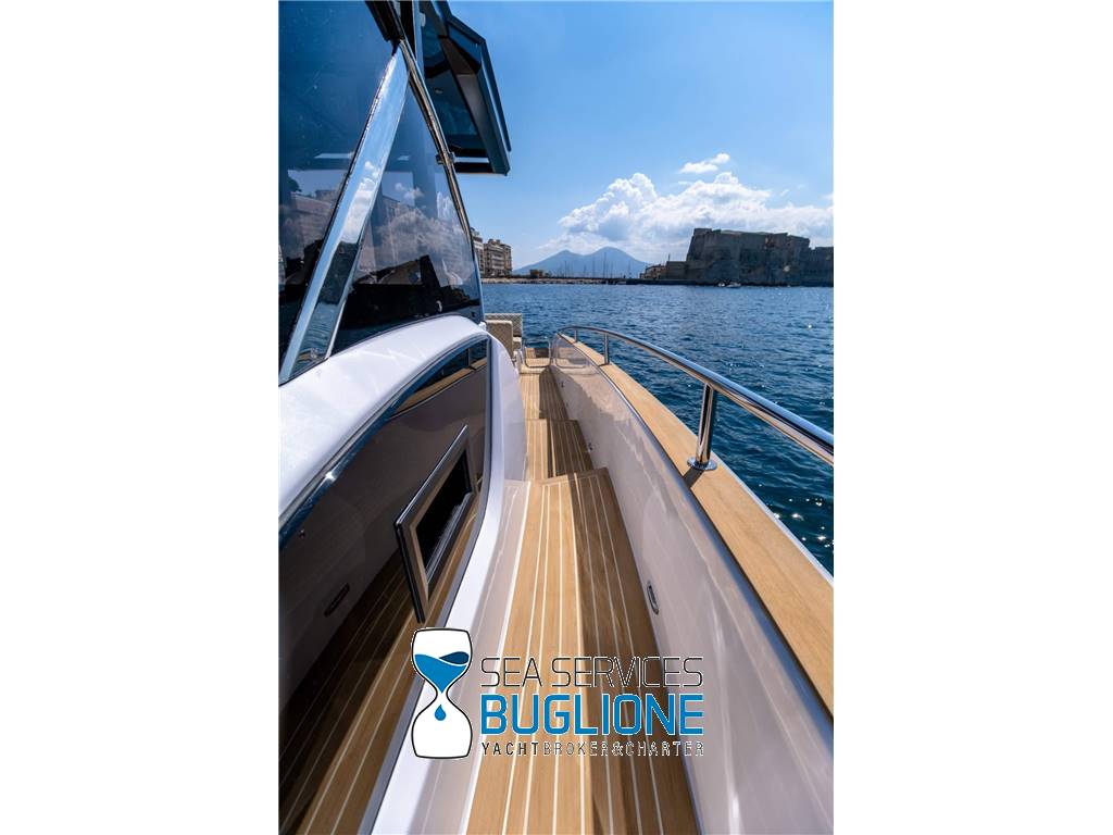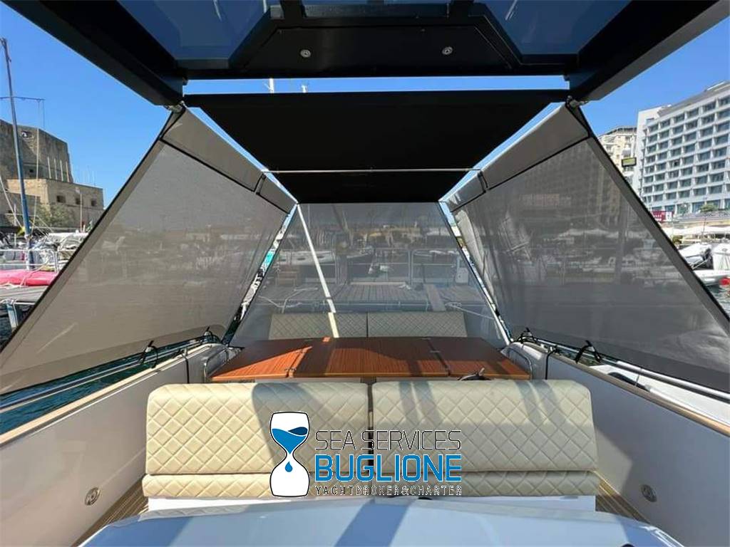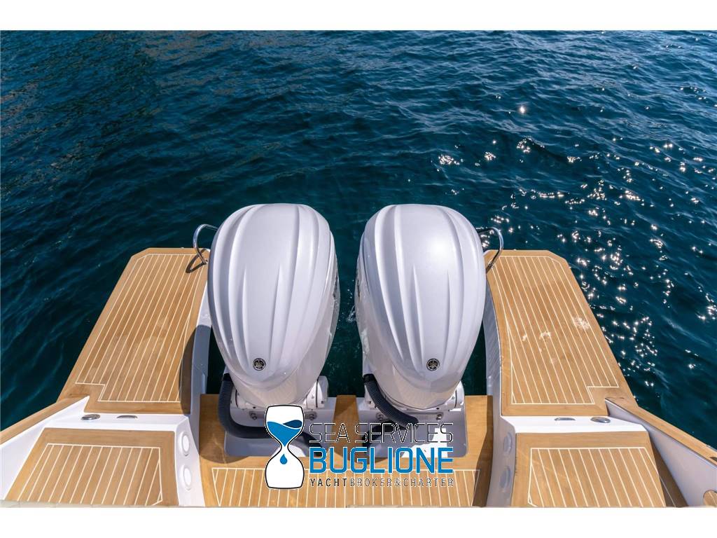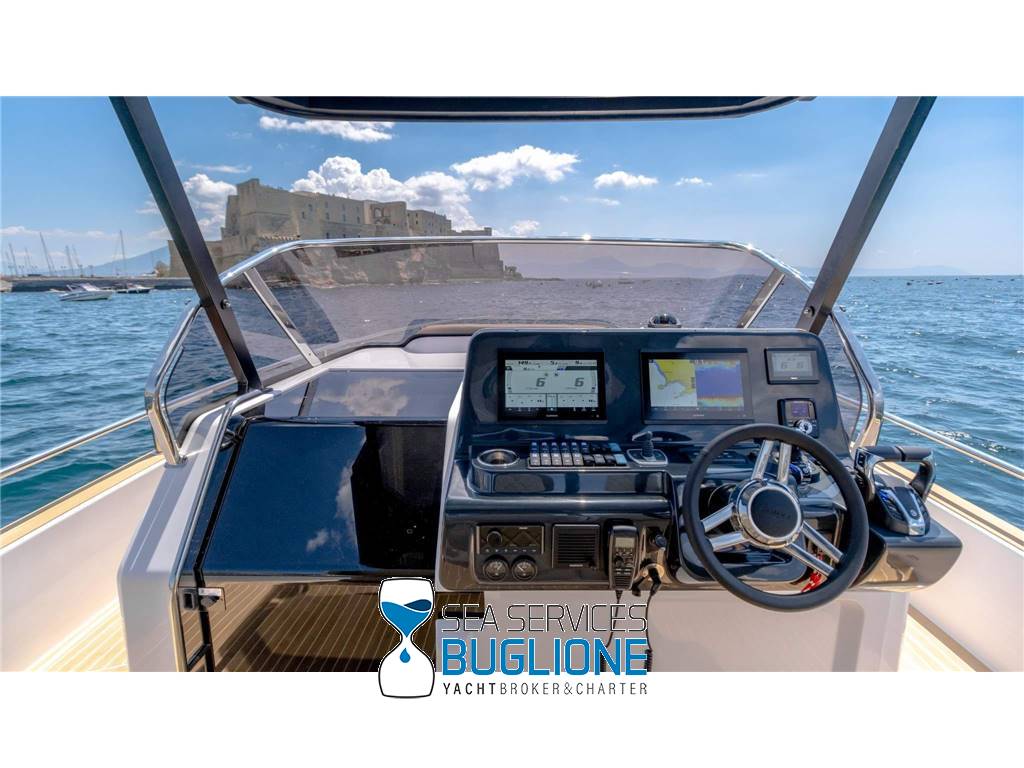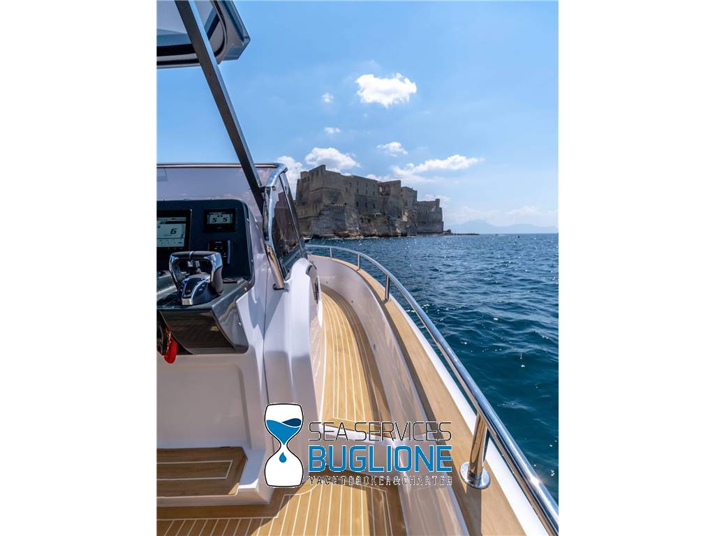 Linea moderna per questo walk around studiato nei minimi particolari riesce ad accontentare qualsiasi esigenza per chi ama vivere sia il pozzetto sia la prua. Non manca vano di poppa per lo stivaggio, T top e tendalino elettrico per l'ombra. Motori fuoribordo ottime prestazioni con meno consumi.