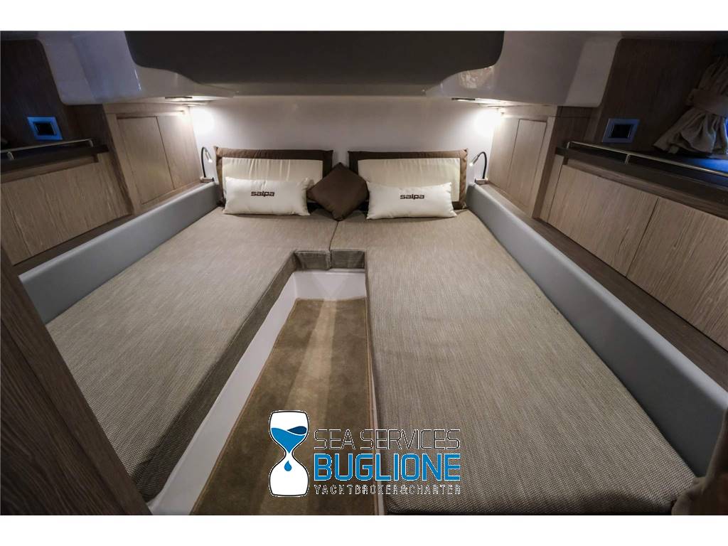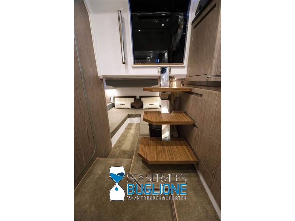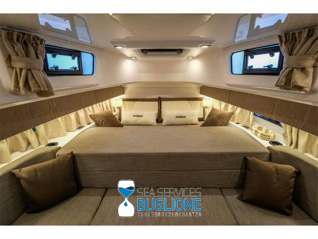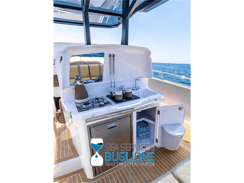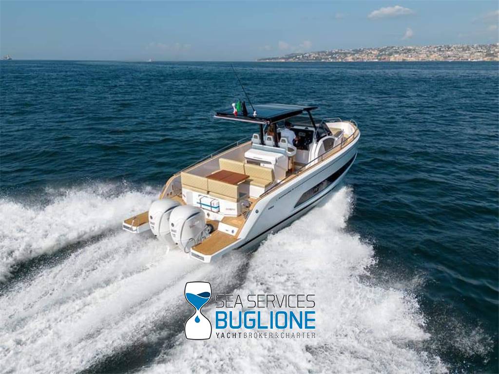 Linea moderna per questo walk around studiato nei minimi particolari riesce ad accontentare qualsiasi esigenza per chi ama vivere sia il pozzetto sia la prua. Non manca vano di poppa per lo stivaggio, T top e tendalino elettrico per l'ombra. Motori fuoribordo ottime prestazioni con meno consumi.