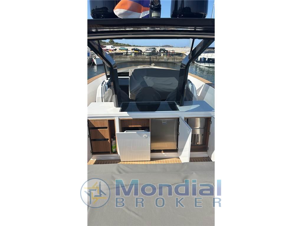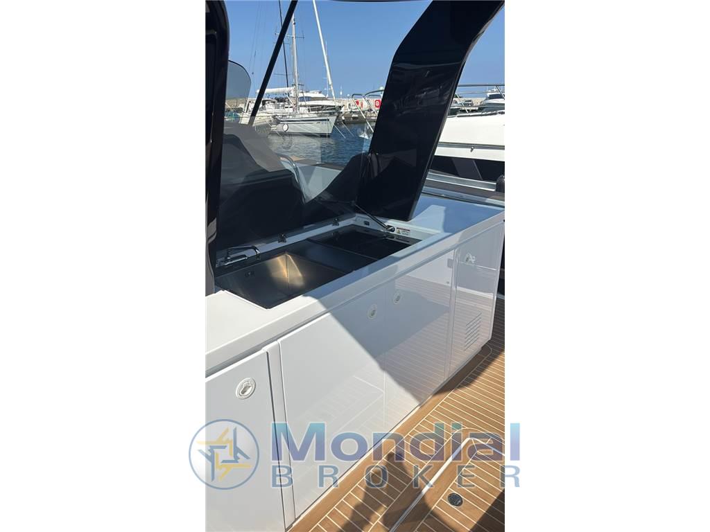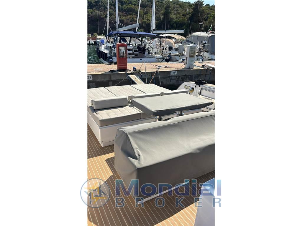 Ancora, Auto-trim, Autoclave, Autogonfiabile, Caricabatterie, Doppia timoneria, Elica di prua, Flap elettrici, Hard Top, Lavaggio catena, Passerella, Piattaforma, Pompa di sentina elettrica, Presa 220V banchina, 1 Stabilizzatori (Sea Keeper ), T-Top, Tavolo in pozzetto, Winch elettrico Cucina, Frigorifero esterno, Frigorifero interno, Piastra elettrica Dotazioni di sicurezza entro 50 miglia Boiler, Clima reversibile, Collegamento internet, Prese interne 12V, Prese interne 220V, Riscaldamento, Telecamera, 1 Termovisore (Termocamera FLIR ), Wc marino elettrico Altoparlanti, Antenna satellitare, Radio AM/FM, Stereo Angolo barra, Bussola, Comando motori elettronico, Ecoscandaglio, Joystick, Pilota automatico, Plotter con antenna GPS, Radio VHF Cuscineria completa, Teli chiusura T-Top, Telo copri consolle, Telo coprisedile, Tendalino