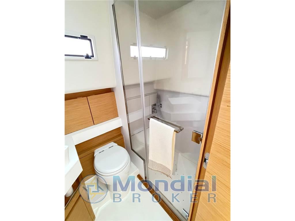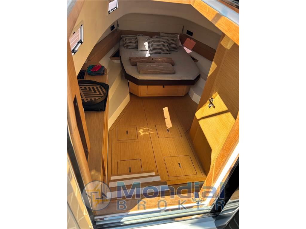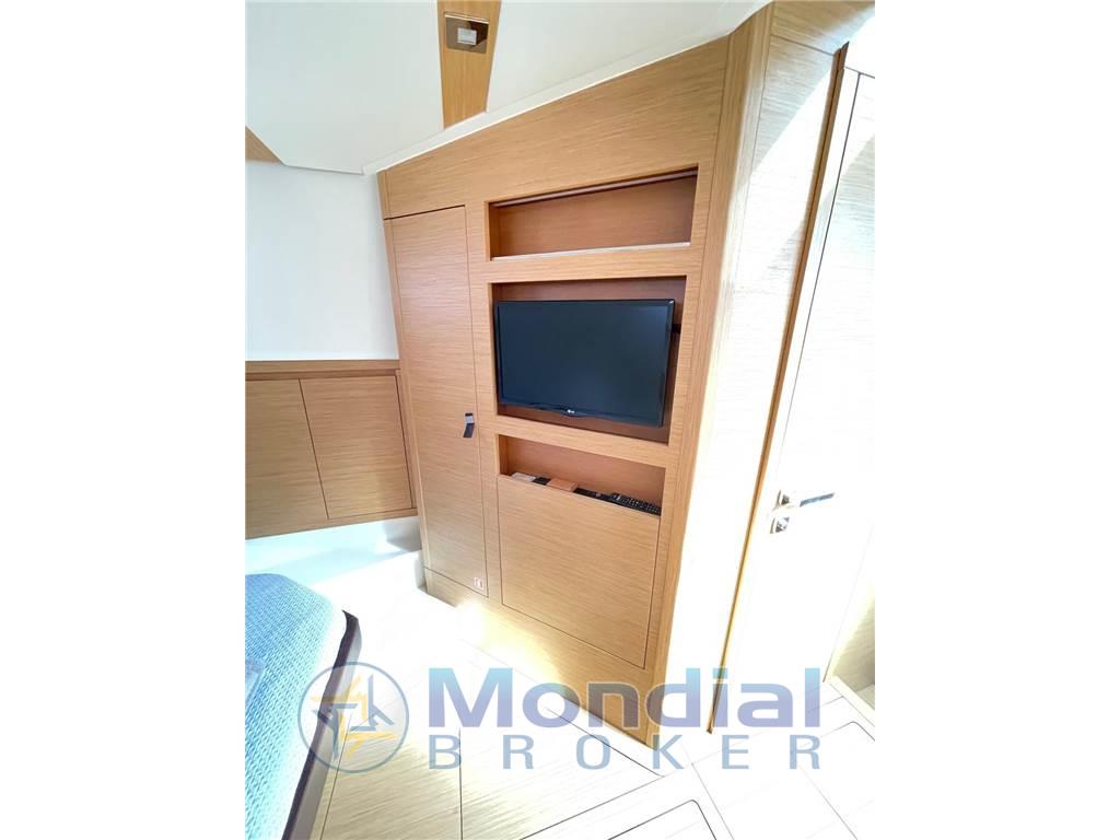 Layout con cabina armatoriale a prua, cabina ospiti a poppa, e bagno con doccia separata. Interni luminosi e finiture di alta qualità, in perfetto stile Pardo.