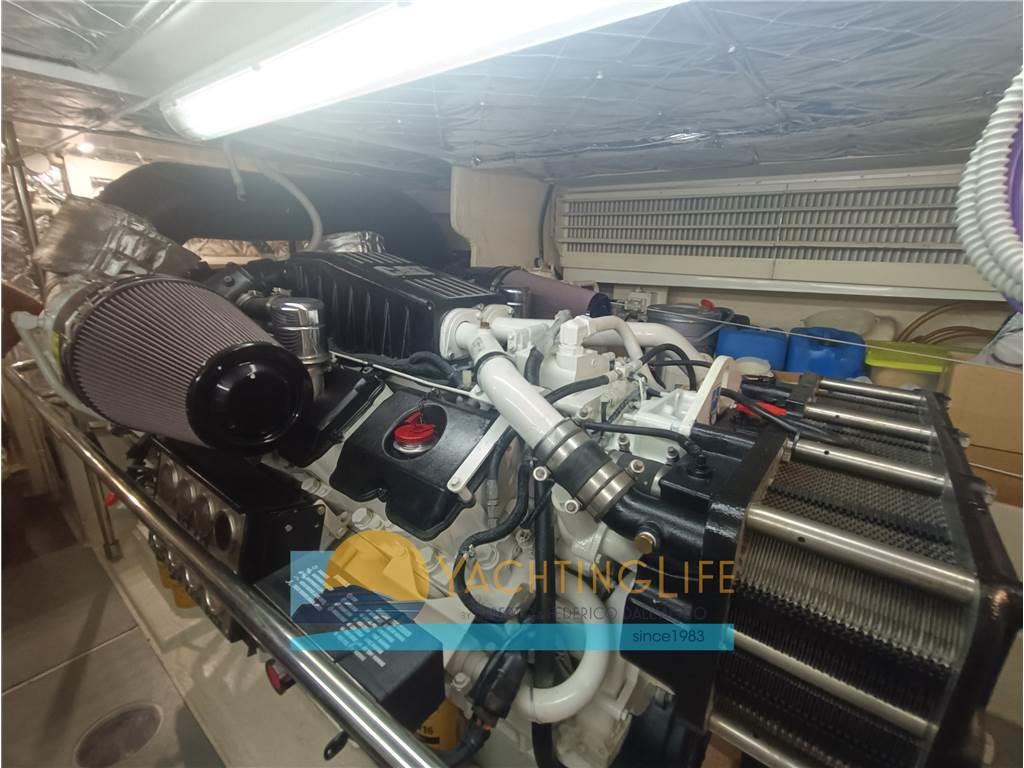 Allarme motore, Allarme sentina, 2 Ancora, Angolo barra, Antenna radar, Autoclave, 2 Autogonfiabile, Batterie, Bussola, Camminamenti laterali in teak, Caricabatterie, Doccia esterna, Doppia timoneria, Ecoscandaglio, Elica di prua - bow thruster, Faro orientabile, Flap idraulici, GPS, Gruette per tender su fly, Impianto antincendio, Indicatori Flaps, Interfono, Lavaggio catena, Lavandino nel Pozzetto, Luci di cortesia, Luci subacquee (colorate), Passerella (idraulica), Piattaforma, Pilota automatico, Pompa di sentina automatica, Pompa di sentina elettrica, Porta ingresso, Porta laterale, Pozzetto Teak, Presa 220V banchina, Radar, Radio VHF, Salpa Ancore Elettrico, Scaletta da bagno, Tavolo pozzetto, Tender (e motore), Tromba, 2 Winch tonneggio di poppa