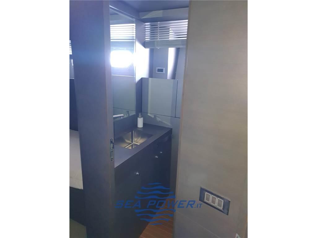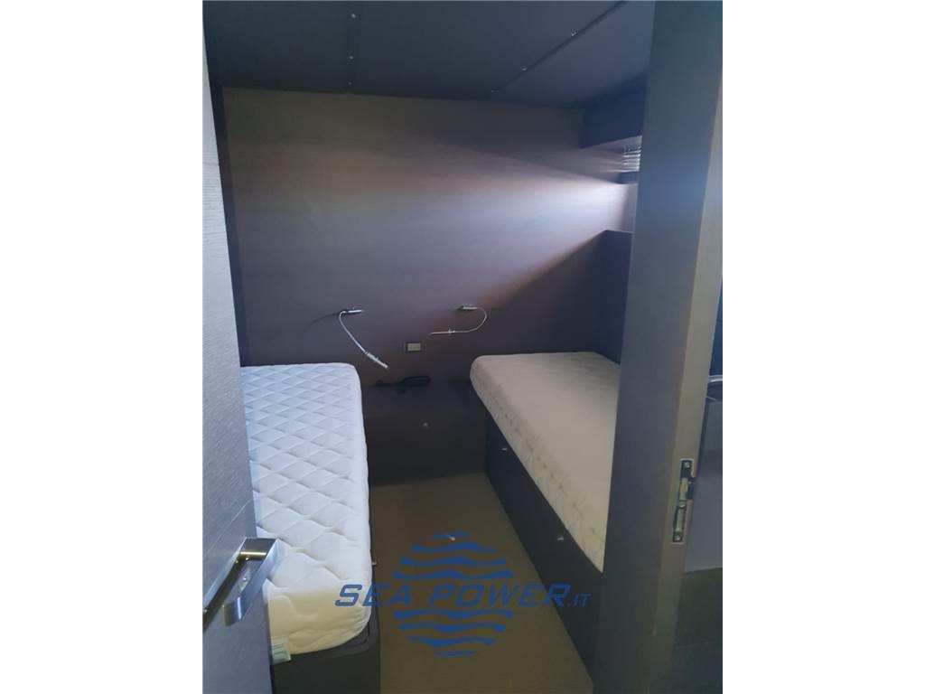 La configurazione prevede 4 cabine: una suite armatoriale full beam a poppa, una suite VIP a prua con letto queen size e due cabine ospiti laterali doppie, tutte dotate di servizi privati. A poppa è presente una cabina equipaggio con tre posti letto e accesso indipendente, a garanzia della privacy per l’armatore e gli ospiti.