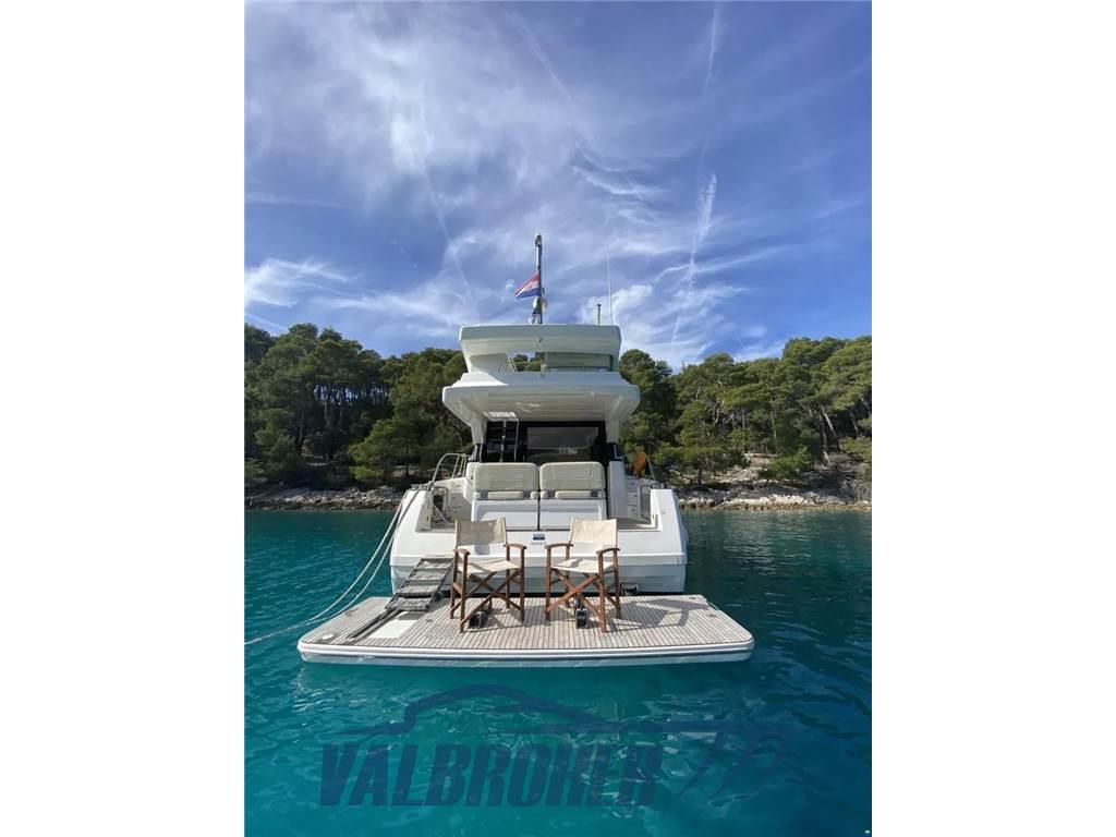 Altoparlanti, Aria condizionata (caldo/freddo), Bimini, Boiler, Cappottina, Congelatore, Cuscineria completa, DVD, Fornello, Frigorifero interno, Microonde, Piastra elettrica, Piastra in vetroceramica, Stereo (Fusion), WC marino elettrico, tavolo su fly