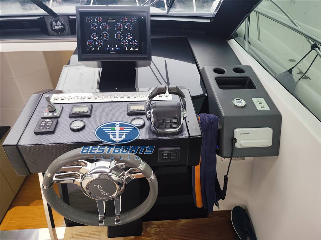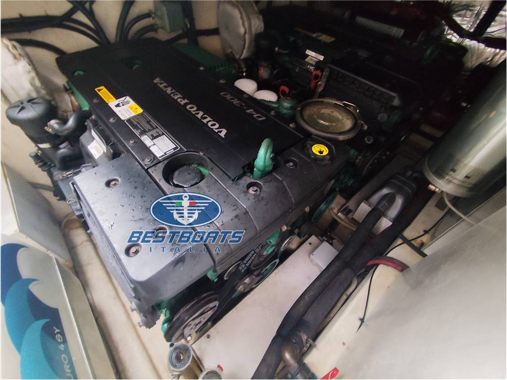 strumenti motore VOLVO PENTA su doppio display, manette elettroniche con cruise control, gps GARMIN TOUCH con interfacciato con profondimetro e PILOTA AUTOMATICO, vhf GARMIN, flaps LENCO con pulsantiera con indicatori a led, bussola, luci via, tromba, stereo FUSION MS-RA70N con casse FUSION, elica di prua SIDEPOWER, n* 2 indicatori gasolio analogici, conta catena MZ.