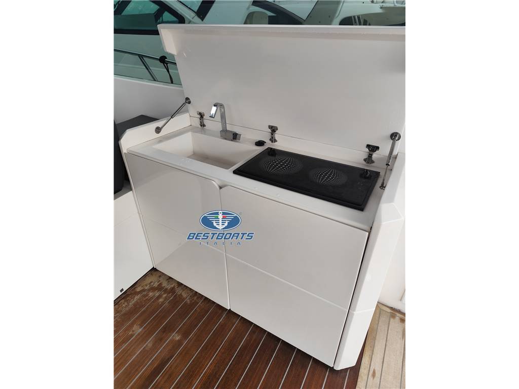 Generatore, Aria condizionata, doppio frigorifero, cucina esterna, pedana di poppa a immersione, passerella besenzoni, tavolo pozzetto elettrico, Hard Top elettrico, tv nel pozzetto, wc elettrico