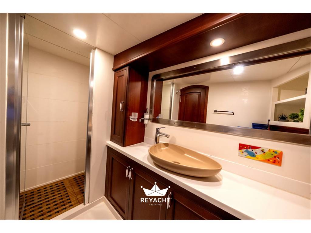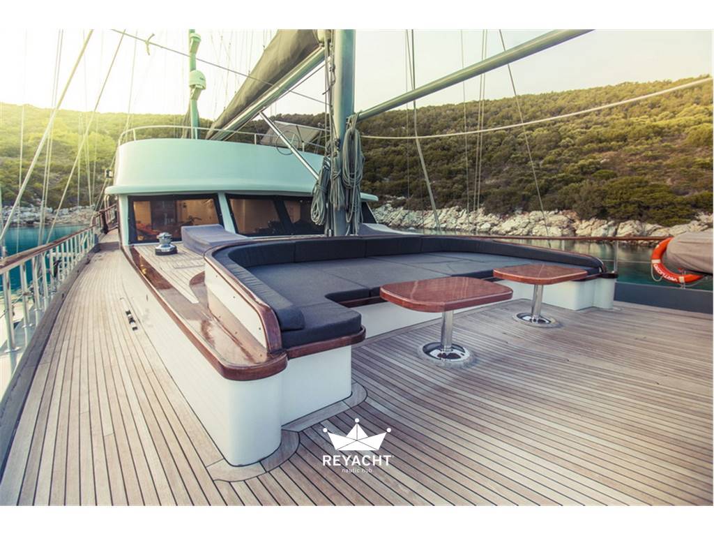 Gli spazi esterni sono ampi, con ponti in teak, zona pranzo all’aperto e flybridge spazioso. Gli interni offrono 6 cabine per 12 ospiti, inclusa una grande cabina armatoriale a poppa, tre matrimoniali e una doppia, tutte con bagno privato. Un caicco di prestigio, pronto all’uso e ideale sia per uso privato che charter.