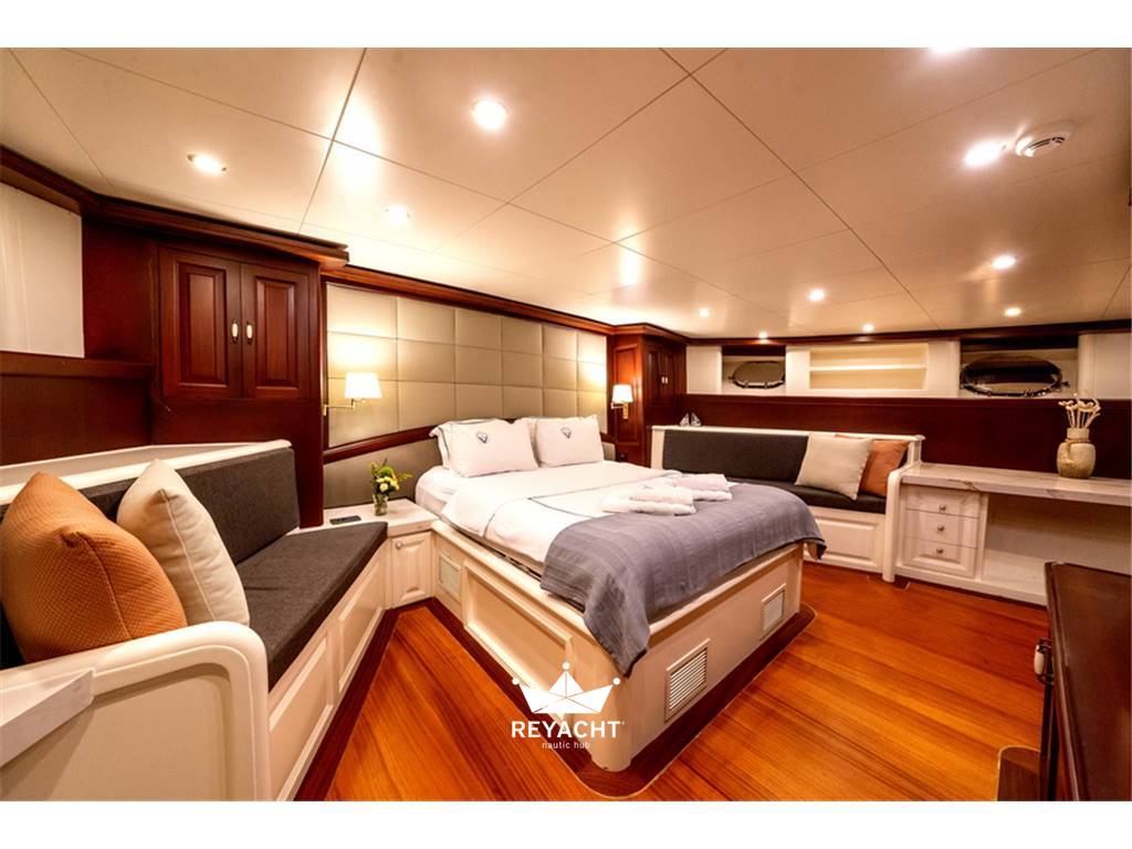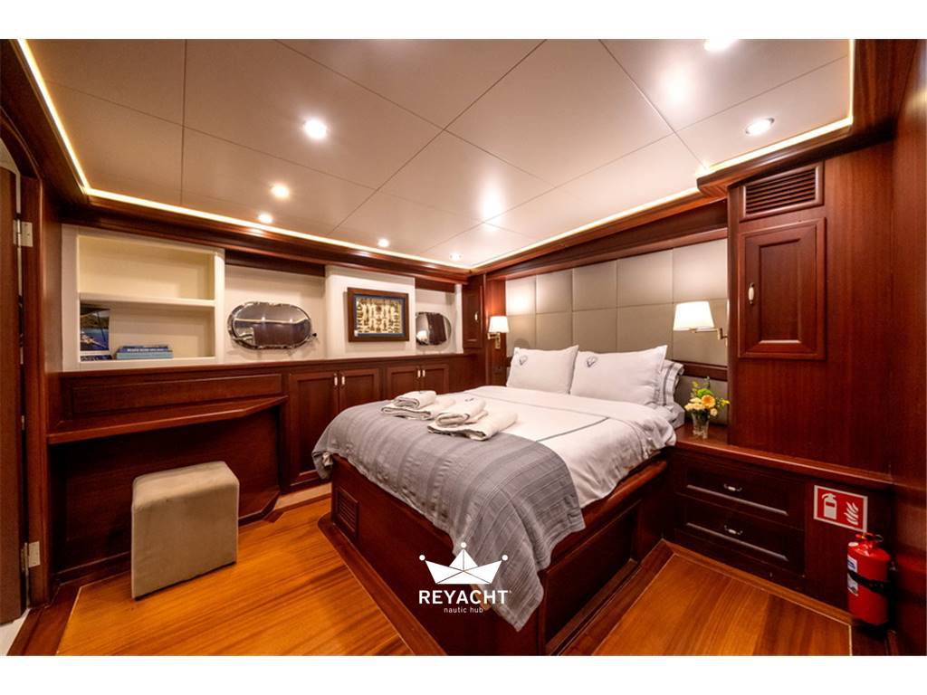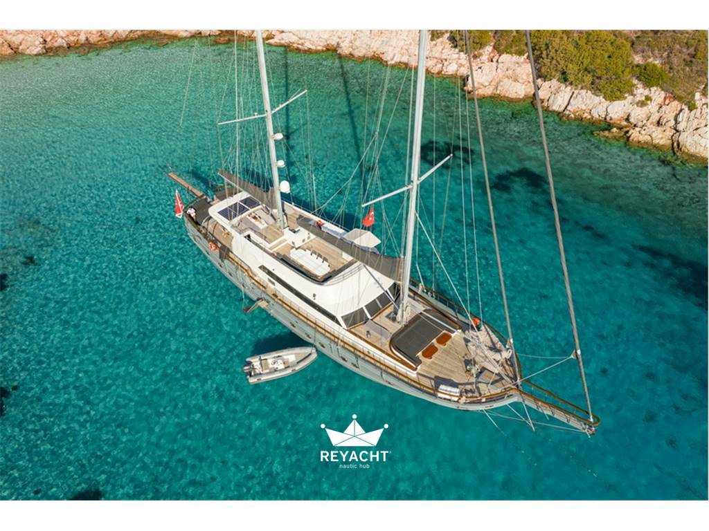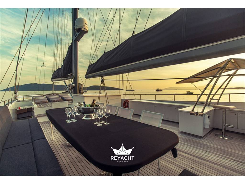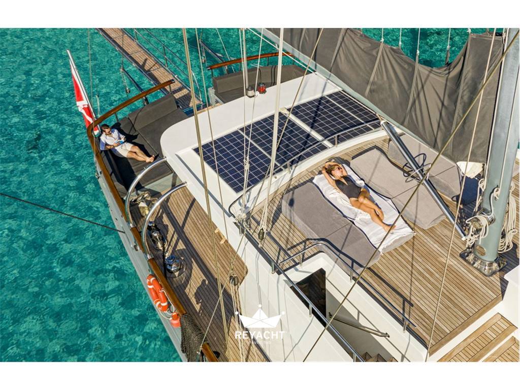 Dispone de amplios espacios exteriores en teca, flybridge espacioso y un interior capaz de alojar 12 invitados en 6 cabinas con baño privado. Un caicco excepcional, listo para navegar y destacar en cualquier puerto.