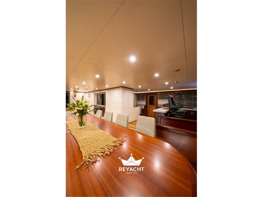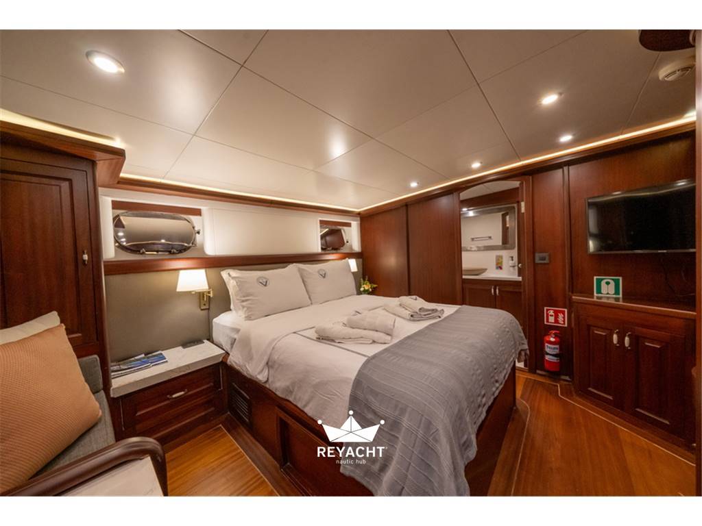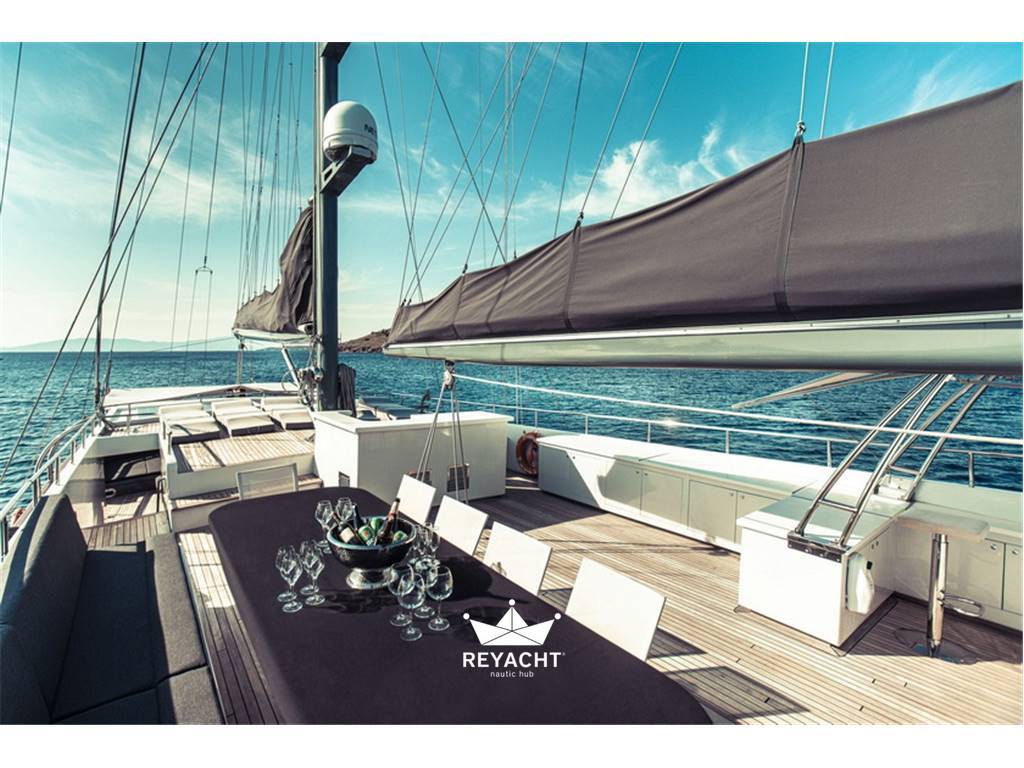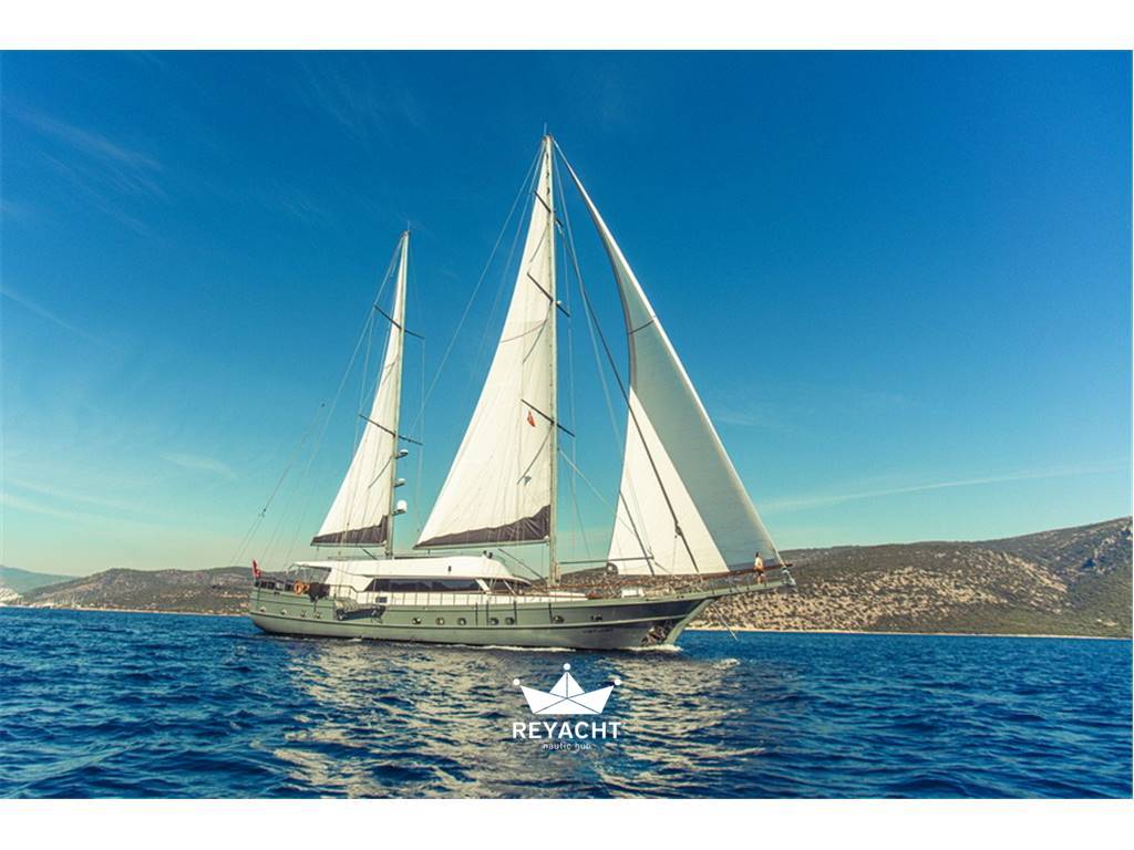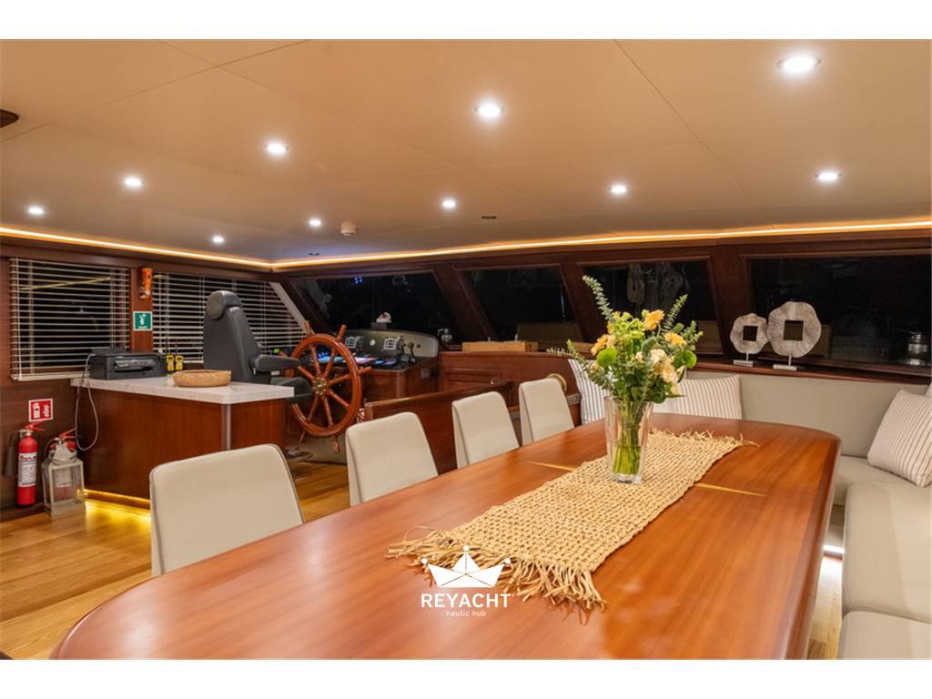Dispone de amplios espacios exteriores en teca, flybridge espacioso y un interior capaz de alojar 12 invitados en 6 cabinas con baño privado. Un caicco excepcional, listo para navegar y destacar en cualquier puerto.