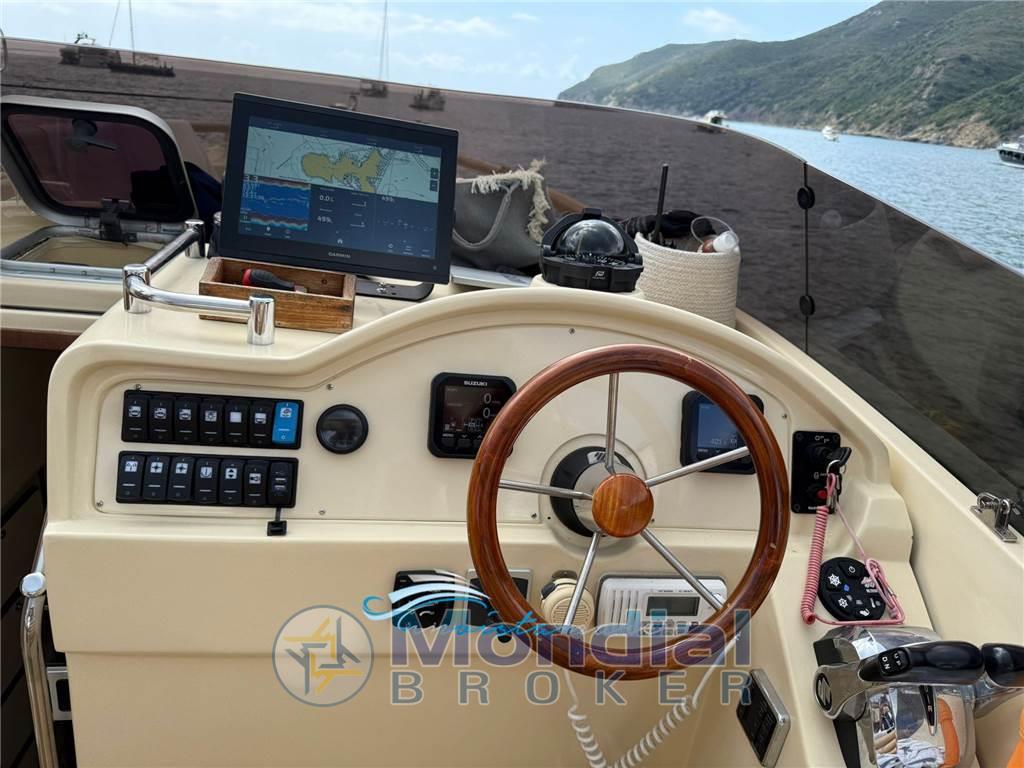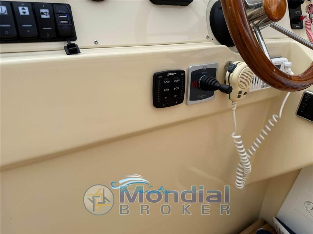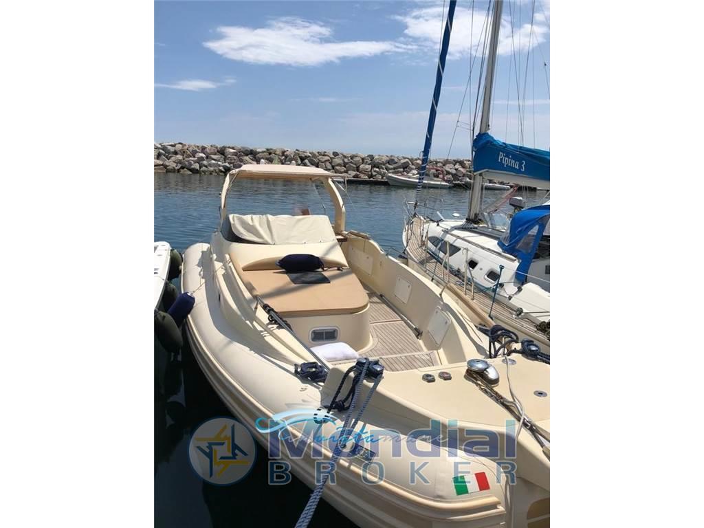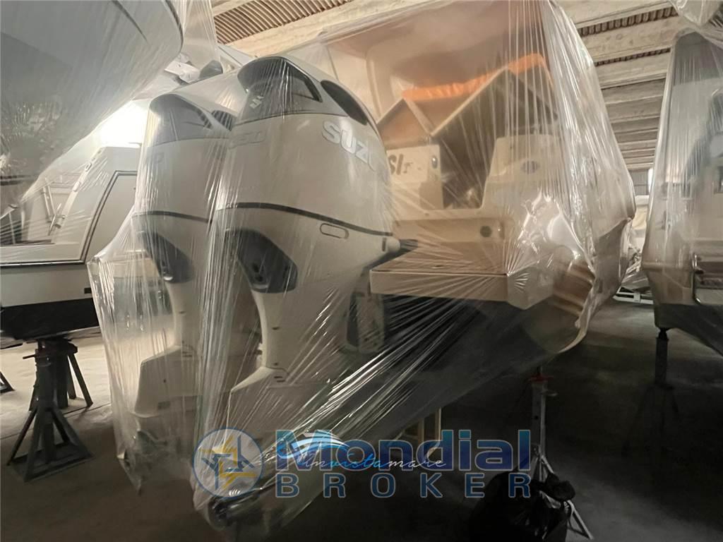timoneria idraulica Ultraflex 2025, 2 braket; manette elettroniche; eliche dual-prop; prese usb sia interne che esterne; inverter 2000; tutte le luci a led; moquette interna rimovibile e lavabile; sempre rimessato al coperto, in acqua 15 giugno al 15 settembre; compressore per il gonfiaggio dei tubolari, copertura integrale per la notte . 2021 NUOVO : scorrimento pali tendalino posteriore, a copertura di poppa in bimini crema, spiaggetta nuova in flexitec , scaletta, impianto idraulico con posizionamento cassone per l’acqua a poppa 200 litri, rivestimenti in pelle dei tientibene, fuochi cucina. Interni impianto audio di nuova generazione con sistema Glauk con due zone interne ed esterne impianto invisibile con eccitatori, tubi corrugati motori, gavoni di poppa stagni ; 2024 installati 2 Suzuki 350 uno del 2019 e uno 2023 ; 2024 NUOVO: elica di prua, GPS e plotter Garmin, impianto elettrico ; 2025 NUOVO: aria condizionata Frigomar, WC, timoneria idraulica Ultraflex.