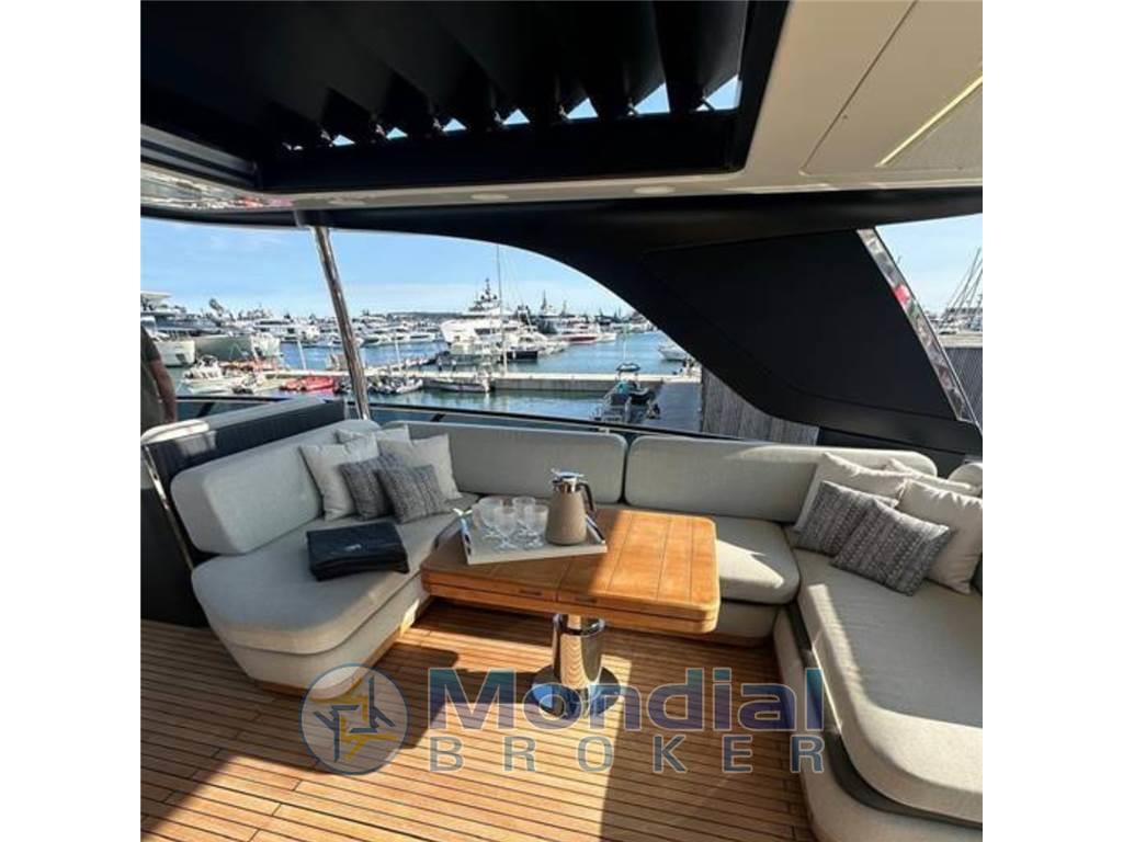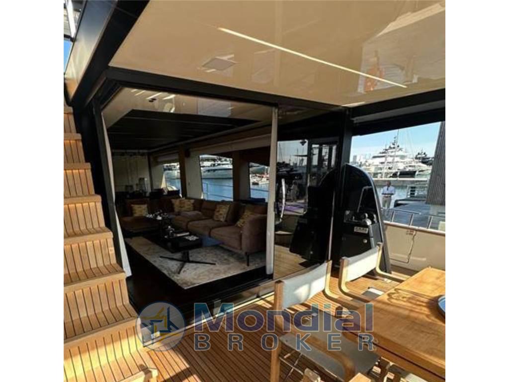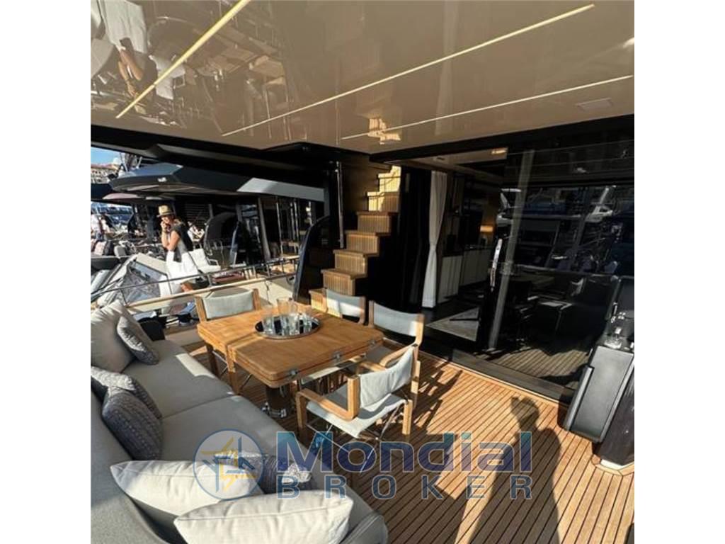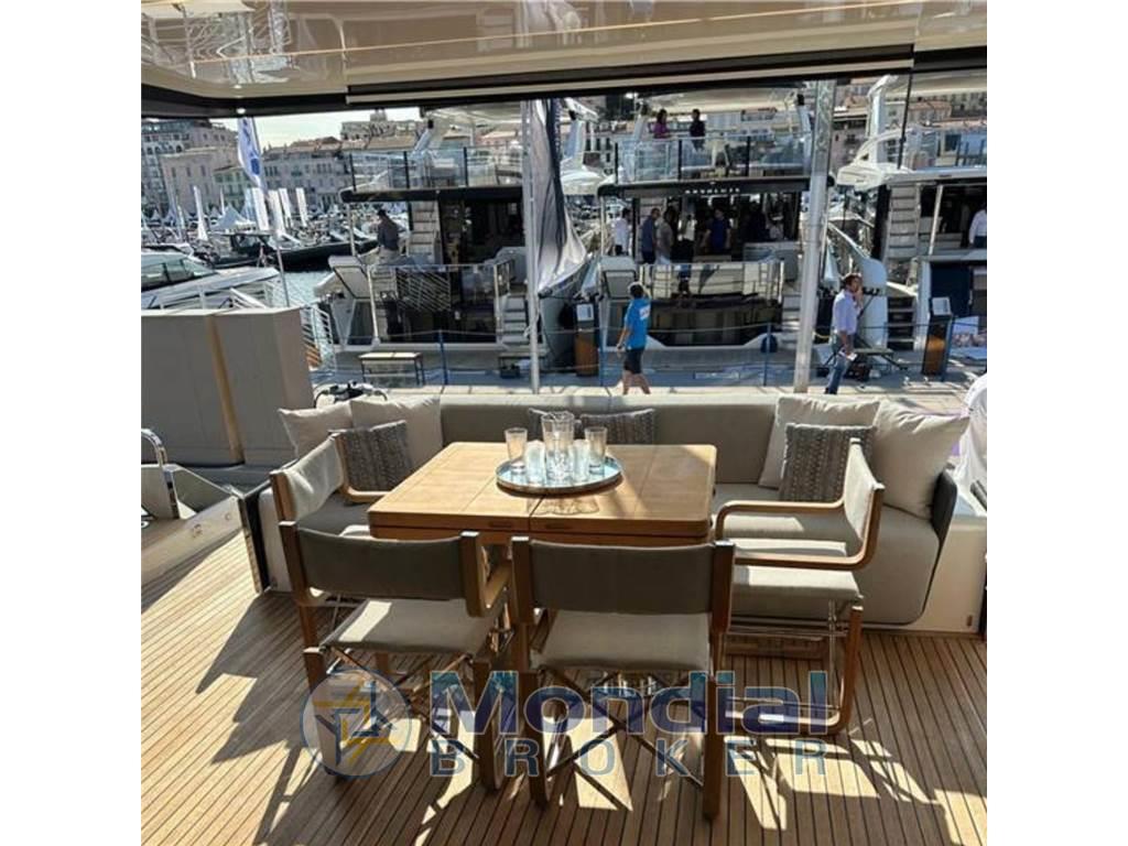 Sul main deck e sul fly, lo yacht offre grandi spazi all'aperto, con aree dedicate alla socialità e al relax sia a poppa che a prua. A queste si aggiunge anche la spiaggetta raggiungibile in modo sicuro e agevole. Dotata di un lift che le permette di alzarsi e abbassarsi e di traslare in avanti, la plancia può diventare un'immensa terrazza sul mare grazie alla straordinaria superficie concessa dal vano garage rivestito in teak.