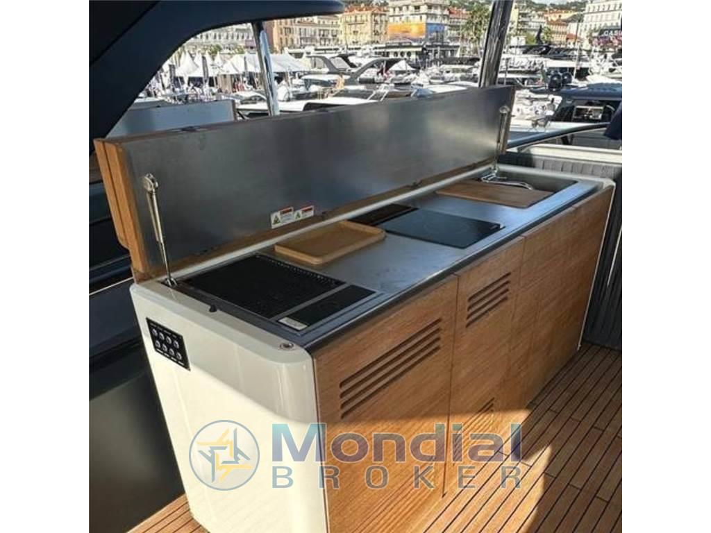 Angolo barra, Antenna radar, Bussola, Camminamenti laterali in teak, Caricabatterie, Comando motori elettronico, Doccia esterna, Doppia timoneria, DSC vhf, Ecoscandaglio, Elica di prua - bow thruster, Flap elettrici, Hard top, Luci di cortesia, Pilota automatico, Plotter con antenna GPS, Pozzetto Teak, Presa 220V banchina, Radar, Salpa Ancore Elettrico, Tavolo pozzetto, Tromba