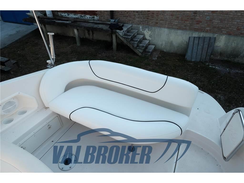 Visibile in secca in Adriatico. Motorizzato 1x280 HP Volvo Penta 5.7 Gi DP/S. Lavori 2024: wrapping blu adesivo, cuscineria esterna, tendalino. Raiser revisionati nel 2025.