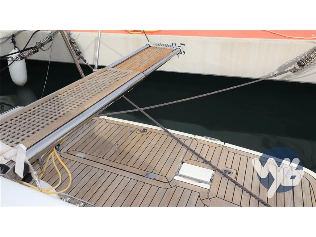 Allarme motore, Allarme sentina, Ancora, Cavo corrente di banchina, Doccia esterna, Elica di prua - bow thruster, 2 Flap idraulici, Motore fuoribordo per tender, Passerella, Pompa di sentina elettrica, Pompa di sentina manuale, Porta ingresso, Presa 220V banchina, Salpa Ancore Elettrico, Scaletta da bagno, Tavolo pozzetto, Tender.