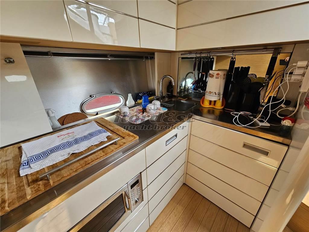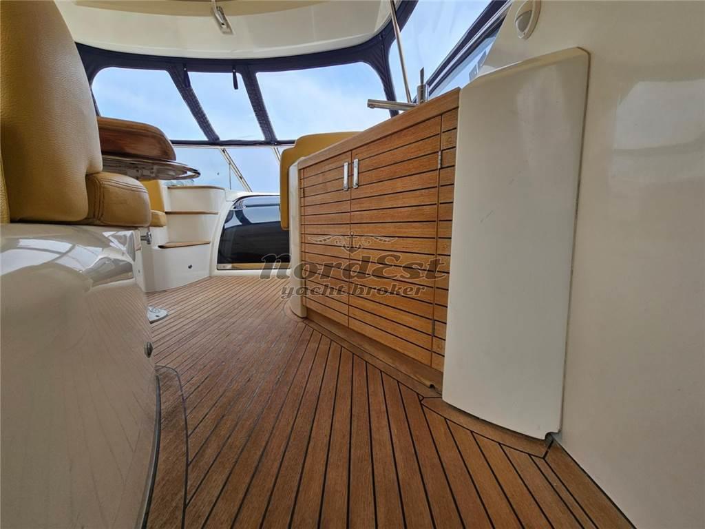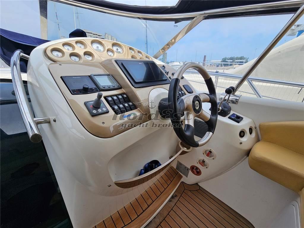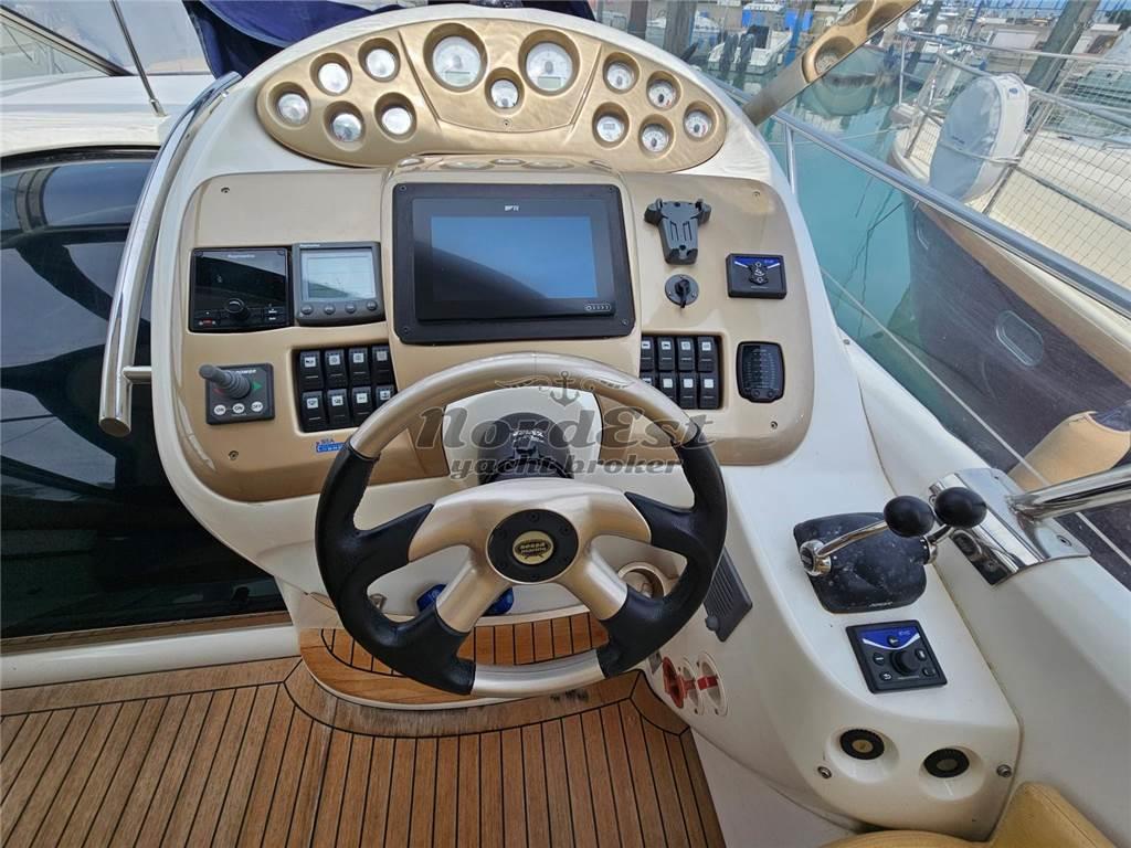 La strumentazione include timoneria idraulica, manette elettroniche, elica di prua, GPS e pilota ultima genarazione Raymarine, eco Raymarine, controllo elettronico posizione flap