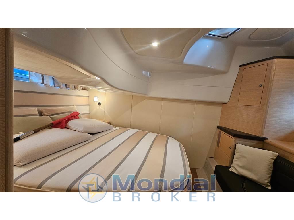 La cabina Vip a centro barca con letto matrimoniale, sfrutta tutta la larghezza dell'imbarcazione e ha accesso diretto al bagno ospiti, soluzioni che normalmente sono presenti solo su barche più grandi.