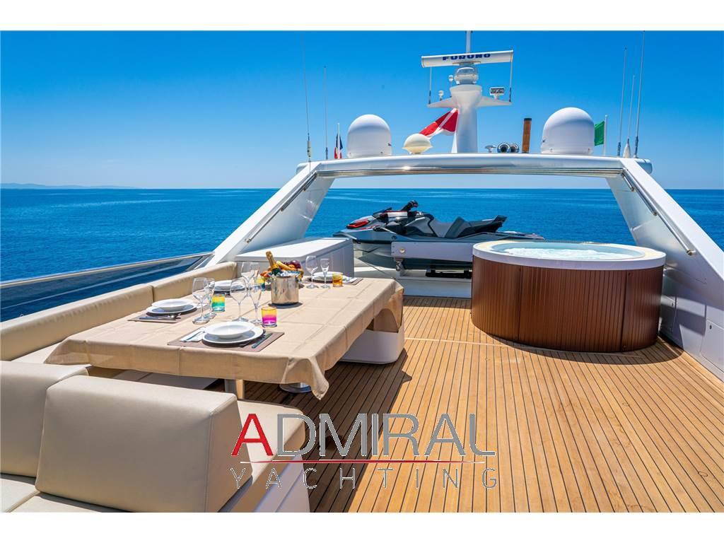 flybridge è molto spazioso e dispone di una jacuzzi per 4 persone e un tavolo con divano