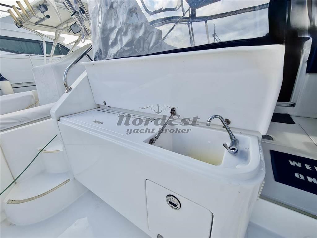 Dotata di trolling valve, autopilota e generatore Mase 3,5 kW, è pronta per ogni tipo di avventura, sia che tu stia esplorando il mare in tranquillità, sia che ti stia dedicando alla pesca. A proposito di pesca, questa barca è equipaggiata con 20 porta canne, una vasca del vivo e luci subacquee, per rendere ogni battuta di pesca un’esperienza ancora più entusiasmante.