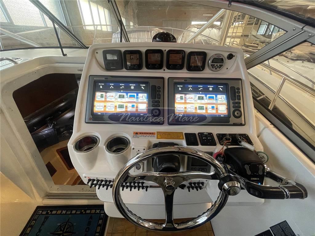 Ancora (inox con catena zincata), Angolo barra (nel pilota automatico), Antenna radar (Raymarine), Autoclave, 3 Batterie, Caricabatterie, Cavo corrente di banchina, Colorazione speciale (scafo celeste), Contametri catena (MZ Electronic in plancia), Corrimano di sicurezza, Doccia esterna, DSC vhf (Raymarine), Ecoscandaglio (Raymarine), Fari fissi a poppa, Faro orientabile, Flap elettrici (Lenco con indicatori in plancia), 2 GPS (Raymarine E120 Wide), Hard top (vetroresina e alluminio), Indicatori Flaps (in plancia), Lavandino nel Pozzetto (con piano di lavoro), Luci di cortesia, Luci di navigazione, Parabordi, Pilota automatico (Raymarine ST70), 2 Plotter con antenna GPS (Raymarine E120 Wide), Pompa di sentina automatica, Pompa di sentina elettrica, Pompa Lavaggio Ponte, Pompa per Acqua di Mare, Porta ingresso (tuna door a poppa sinistra e porta accesso cabina con gradini integrati per passaggio a prua), Presa 220V banchina, Presa acqua banchina, Quadro comandi, Radar (Raymarine 48NM), Radio VHF (Raymarine Ray55E), Salpa Ancore Elettrico (Lewmar 1000 W), Scaletta da bagno (a poppa), Sedile Copilota, Strumenti di misura per motori, Tavolo Salone Abbattibile, Tromba