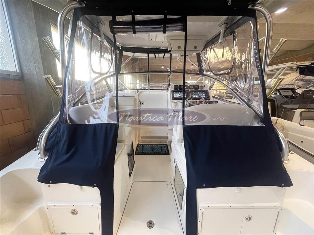 Natante, non immatricolato, questo Triton Boats 301 XD Express ha davvero tutto quello che serve! La costruzione americana, da sempre sinonimo di grande qualità, è la garanzia di avere a che fare con una macchina da pesca e da diporto senza eguali. Il layout del pozzetto è pulito, funzionale e pensato per il pescatore ed il diportista più esigente. Gli spazi di stivaggio a bordo sono abbondanti (sia in coperta che sotto) e facilmente accessibili. Nell'ampio pozzetto troviamo tutto a portata di mano, compresa la vasca del vivo e del pescato. Anche sottocoperta gli spazi generosi e confortevoli offrono tutto il necessario per una piacevole permanenza a bordo. E quando si tratta di lunghe navigazioni, il 301 XD sfrutta al meglio la sua carena a V profonda, la potenza dei 600 hp Yamaha e la grande autonomia di navigazione che vi consentirà di raggiungere il pesce (o le spiagge) in modo rapido e confortevole. La zona della timoneria è protetta da un robusto hard-top in vetroresina ed alluminio con chiusura perimetrale in tela e trasparente per un utilizzo ideale anche fuori stagione o in condizioni meteo non ottimali anche in piena estate. A prua un grande prendisole dona soddisfazione agli amanti della tintarella mentre i pescatori ed i più sportivi potranno dilettarsi nelle varie attività di bordo. Questa barca è inoltre dotata di una completissima elettronica di navigazione (compreso Radar e Pilota Automatico per le traversate più lunghe ed impegnative) mentre il comfort è assicurato dall'impianto di climatizzazione caldo-freddo, dal frigorifero interno, dal microonde e dalla cucina con piastra elettrica.