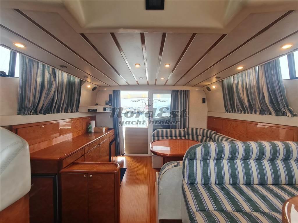 Imbarcazione con grandi spazi sia interni che esterni. Motori Cummins da 450 in buone condizioni con solo 500 ore di moto. Cucina al piano inferiore con con cabina marinaio.