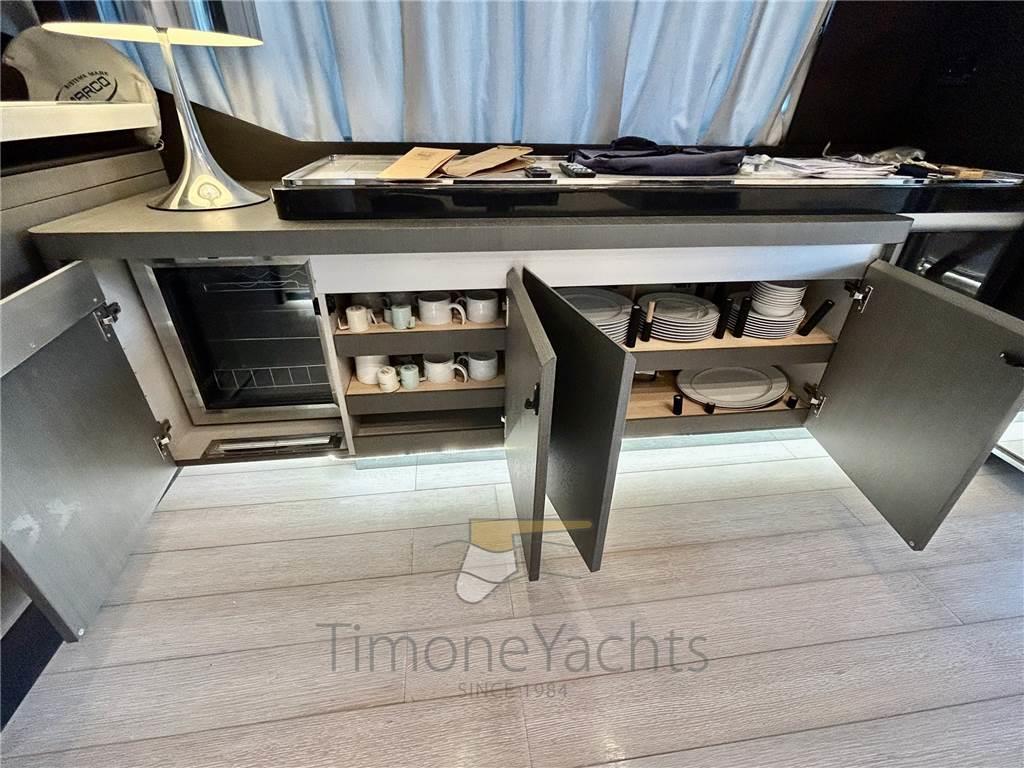 - Si accede dal pozzetto all' interno, dove troviamo una zona living in murata sx, tv up/down a dx. A prora del salone abbiamo a sx la cucina, che scompare totalmente alla vista e zona guida interna a dx, prima della discesa.