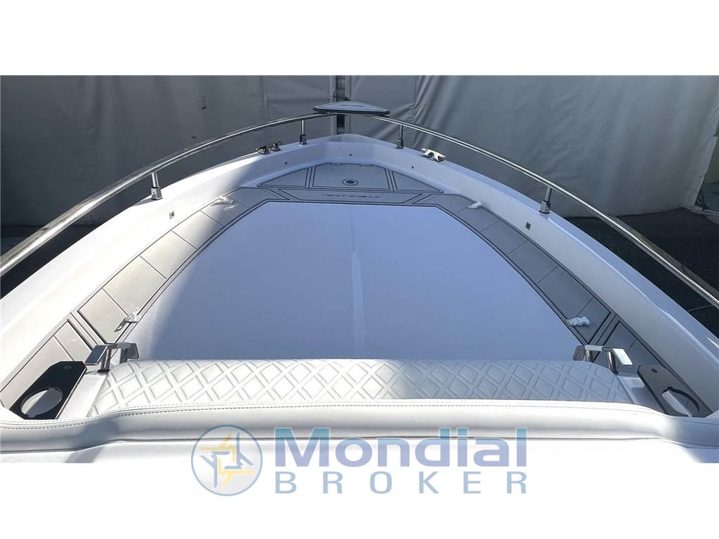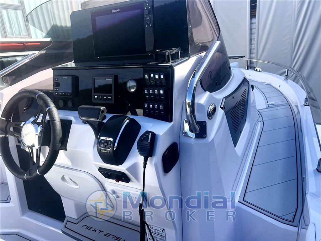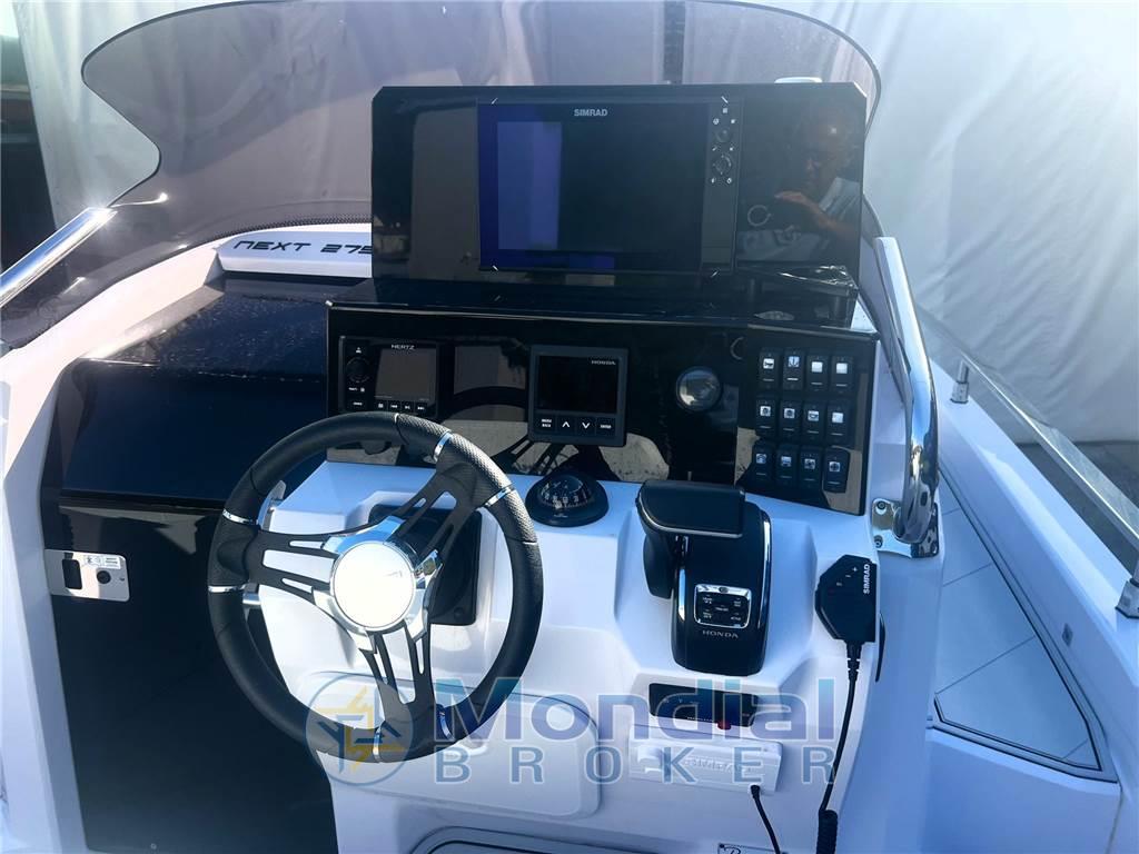 Il nuovo RANIERI NEXT 275 LX carrellabile, di grande eleganza e qualità costruttiva, ben accessoriata , ideale per uscite giornaliere sottocoperta con quattro posti letto e bagno separato unità DEMO preallestita ed in PRONTA CONSEGNA con le seguenti dotazioni extra: Colore murate personalizzato, Sea Deck in pozzetto, Copertura solare con pali in carbonio , Sedute laterali ribaltabili, Impianto batteria addizionale , Doppie batterie, Circuito 220 v con caricabatterie, Impianto stereo HERTZ con 4 AP, Pack Electronic ( GPS/VHF ) , Garmin, Living post con lavello, Parabordo in acciaio inox, Kit LED int/est., Motorizzazione High Performance HONDA 350 HP White Elettronico .