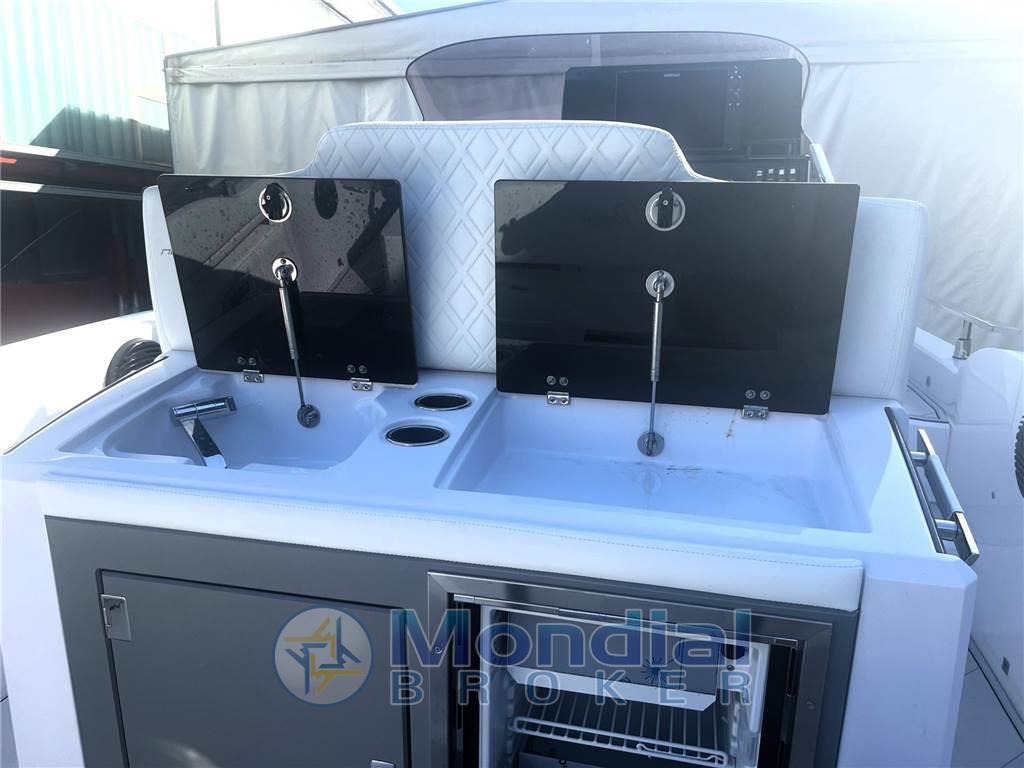 Colore murate personalizzato, Sea Deck in pozzetto, Copertura solare con pali in carbonio , Sedute laterali ribaltabili , Impianto stereo HERTZ con 4 AP, Living post con lavello, Kit luci led, Autoclave