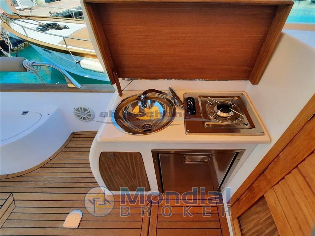Mimì Libeccio 8.50 Cabin usato è la scelta perfetta per chi sogna il mare con lo stile autentico del gozzo italiano ma con tutta la comodità di una barca pensata per vivere giornate intere a bordo. Le linee eleganti e il caldo teak che avvolge camminamenti, pozzetto e piattaforma creano subito un’atmosfera accogliente, mentre i grandi spazi esterni con prendisole, tavolo e cuscinerie invitano a rilassarsi tra bagni, aperitivi e tramonti sul mare. La cabina offre un ambiente intimo per due persone con bagno separato, ideale per weekend fuori porto o giornate senza fretta. Dotata di elica di prua, strumentazione Raymarine, frigorifero esterno e cuscinerie interne nuove, è una barca che rende ogni uscita semplice e piacevole, perfetta per chi vuole salire a bordo e godersi il mare senza pensieri. Se stai cercando un gozzo elegante, pratico e pronto a regalare momenti autentici, questa è una soluzione da vedere dal vivo.