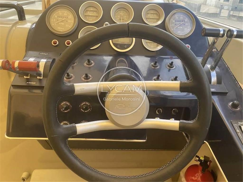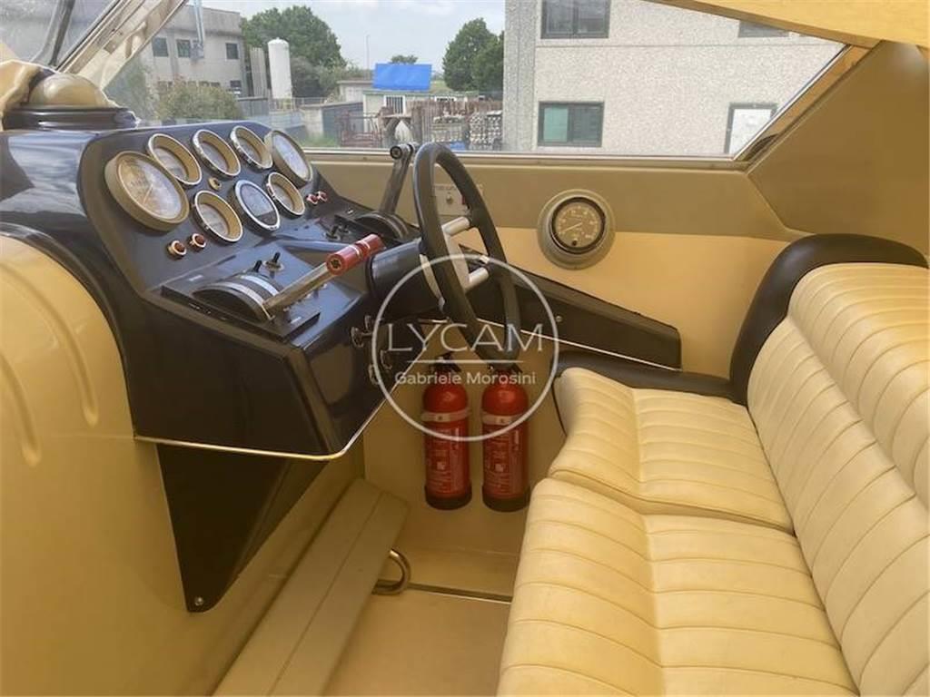 Strumentazione originale VDO per Riva (contagiri, manometri pressione olio motori, manometri pressione olio invertitori, termometri temperatura acqua, amperometri, conta ore); Bussola; VHF; Ecoscandaglio; Impianto HI-FI; Leve gas motori.