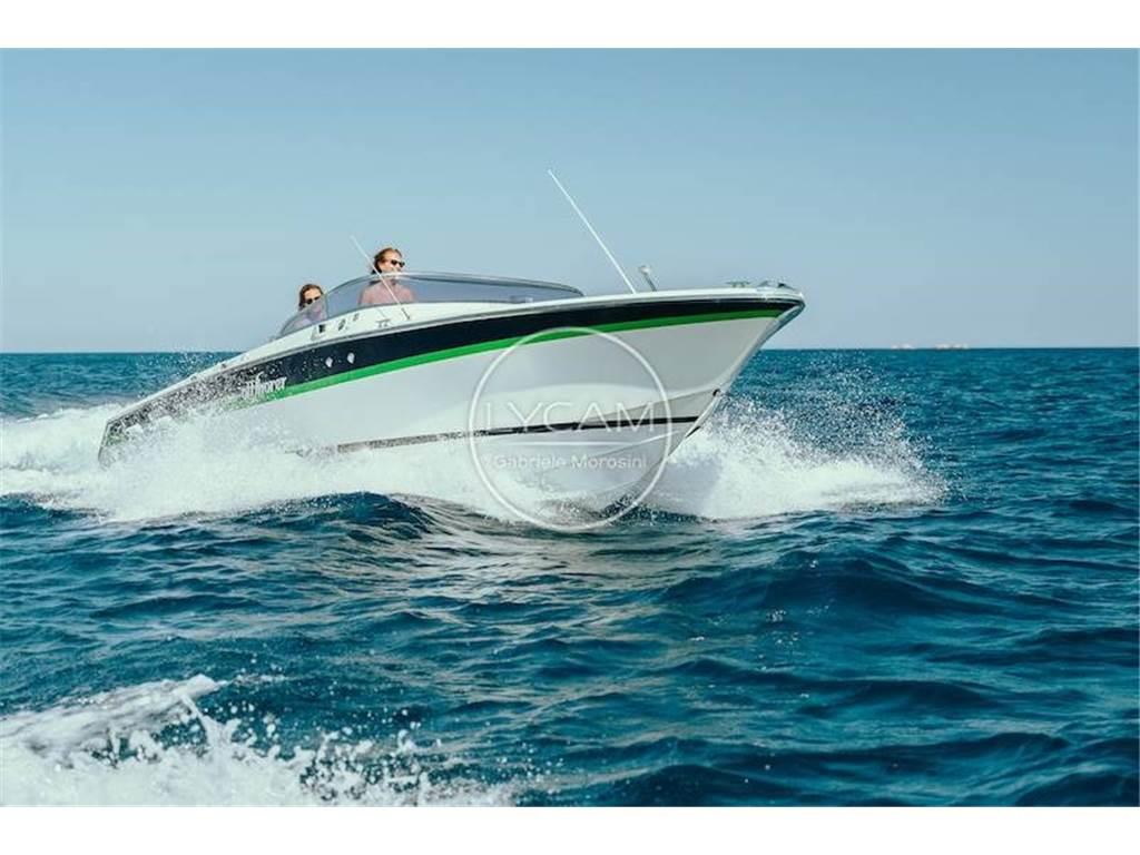 Il pozzetto del motoscafo è di tipo classico, con grande prendisole poppiero e sedile di pilotaggio centrale ed avvolgente, a prua una cabina con due cuccette, il tutto rifinito con una grandissima attenzione ai particolari.