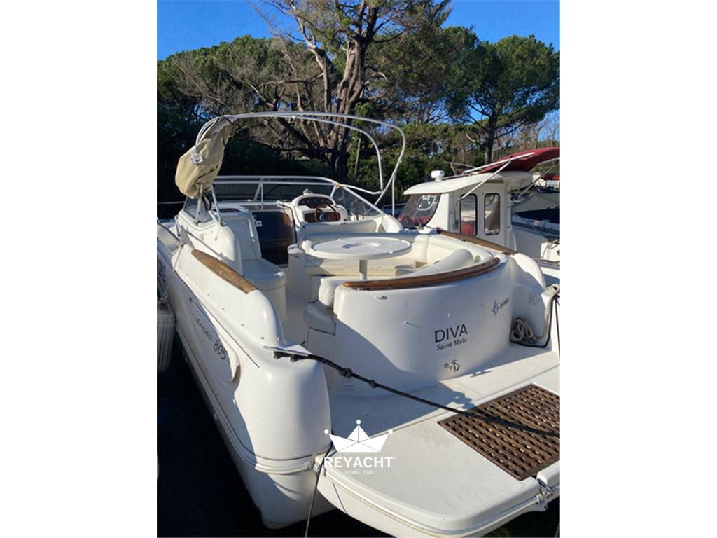 Jeanneau Leader 805 – "DIVA" (2005): Performance e Comfort a Cannes Reyacht presenta "DIVA", un magnifico Jeanneau Leader 805 in ottime condizioni. Dotato di un potente motore Volvo Penta 5.7GXi da 320 CV con sole 600 ore di moto , questo walk-around garantisce crociere sicure a 26 nodi. Gli spazi interni sono ottimizzati con 2 cabine (4 posti letto) e un bagno. Manutenzione impeccabile: ultima carena e pompe nuove nel 2025. Gli accessori includono GPS, ecoscandaglio, verricello elettrico e una cucina attrezzata. Perfetto per chi cerca un’imbarcazione pronta all'uso, elegante e sportiva nelle acque della Costa Azzurra. Un'occasione da non perdere!