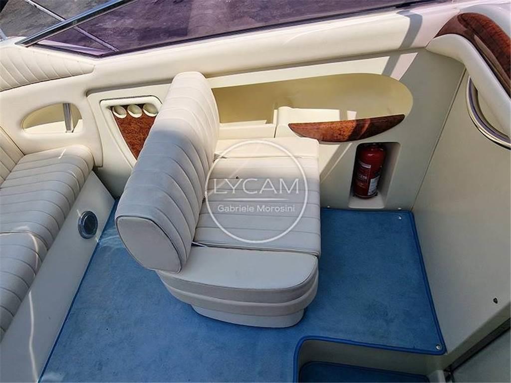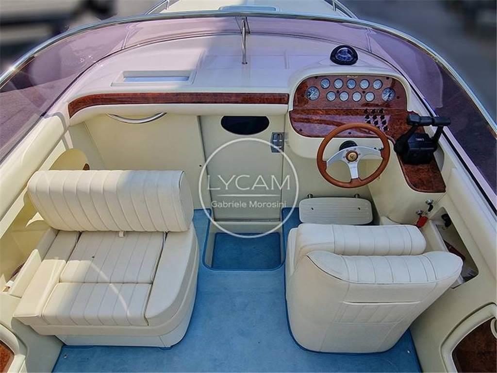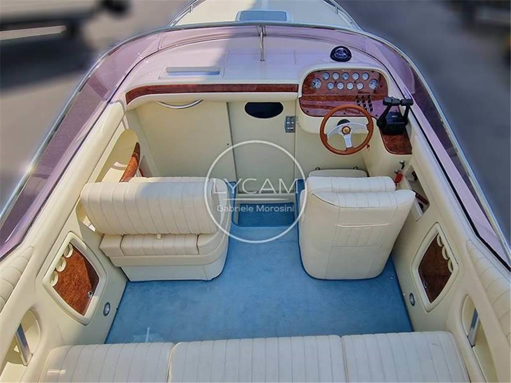Luci di navigazione; Luce fonda; Luce vano motori; Bitte; Ancora; Batteria, Staccabatterie; Doccia di coperta; Frigorifero a pozzetto; Frigorifero sottocoperta; Lettore CD; Pompa di sentina; Radio; Radio FM; Salpa ancora di prua; WC interno; Scaletta bagno; Tientibene coperta; Cuscinerie pozzetto; Plancetta in teak; Telone completo.