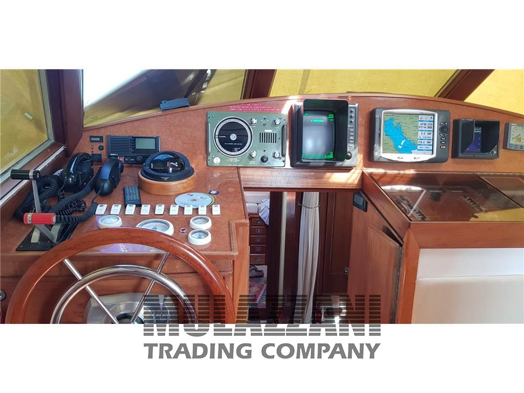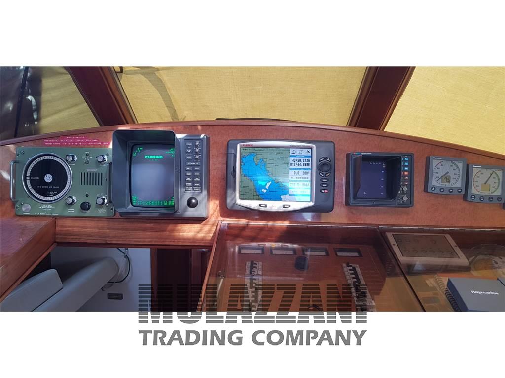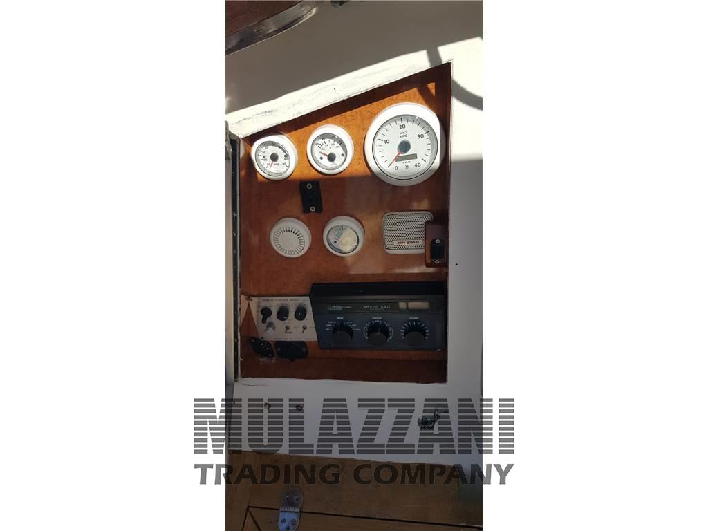 Allarme motore, Allarme sentina, Ancora (con 120 m di catena), Angolo barra, Autoclave, Autogonfiabile, 5 Batterie (batterie nuove 2025), 2 Bussola (una interna ed una esterna), Camminamenti laterali in teak, Caricabatterie, Contamiglia, Display, Doccia esterna, Doppia timoneria, Ecoscandaglio, Elica di rispetto, Epirb, Faro orientabile, GPS, Gruette per tender (a scomparsa besenzoni), Impianto antincendio (7 estintori), Luci di cortesia (led), Passerella, Pilota automatico, Pompa di sentina elettrica, Pompa di sentina manuale, Porta ingresso, Pozzetto Teak, Presa 220V banchina, Presa acqua banchina, Raddrizzatore, 2 Radio VHF (1 Sailor nuova 2019), Salpa Ancore Elettrico (nuovo appena cambiato), Sartiame spiroidale, Scala reale, Scaletta da bagno, Stabilizzatori, Tavolo pozzetto, Tromba, Tuga in teak, 5 Winch, Windex