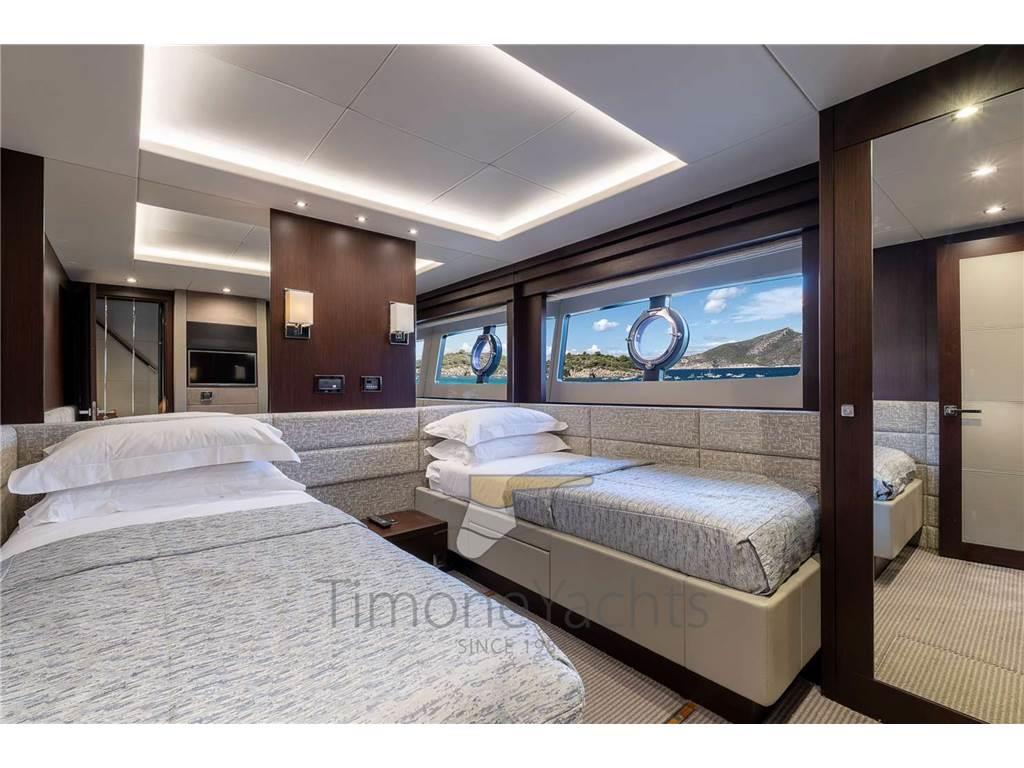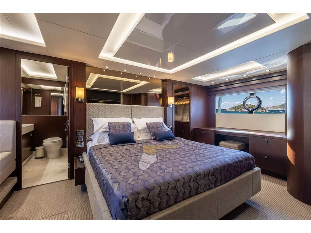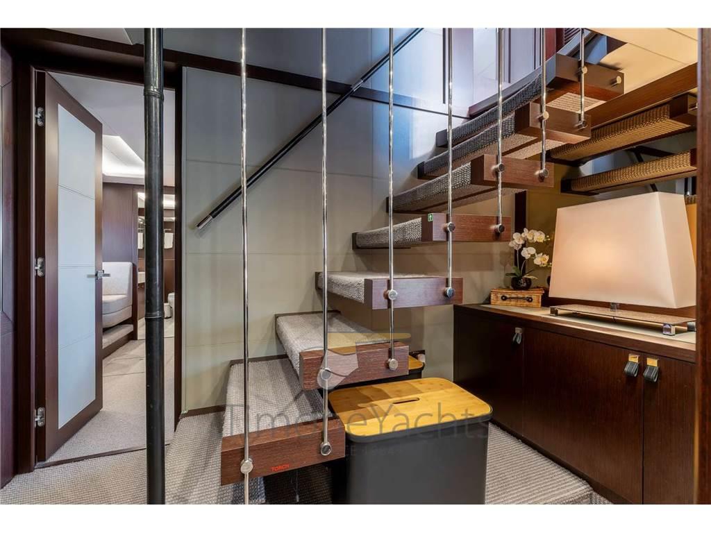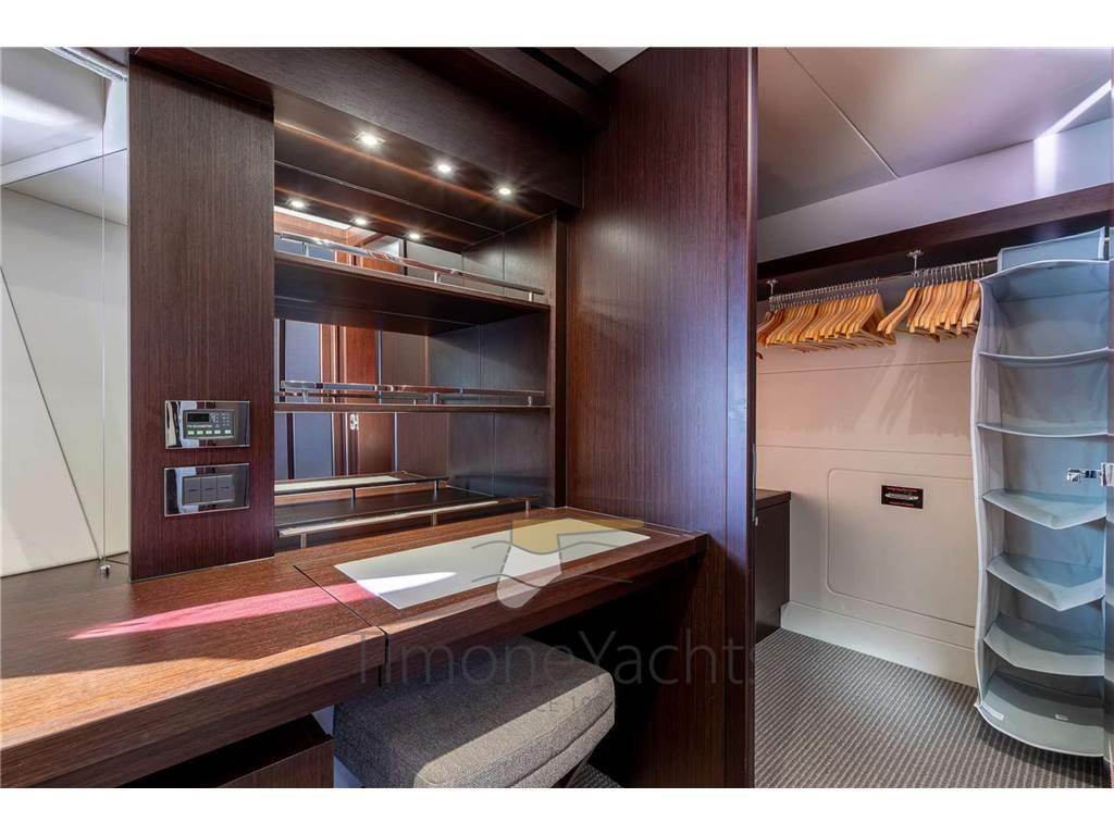 Allarme fumo/gas, Allarme motore, Allarme sentina, Ancora, Auto Dynamic Trim Interceptor, Auto-Trim, Camminamenti laterali in teak, Doccia esterna, Doppia timoneria, Elica di poppa - stern thruster, Elica di prua - bow thruster, Flap elettrici, Hard top, Impianto antincendio, Indicatori Flaps, Lavaggio catena, Passerella, Piattaforma, Pompa di sentina elettrica, Ponte in teak, Porta ingresso, Porta laterale, Pozzetto Teak, Presa 220V banchina, Presa acqua banchina, Stabilizzatori (Sleipner SPS92 Zero-speed hydraulic stabilisers), Tavolo pozzetto, Tender (Williams 395 Sport Jet Tender), Tromba, Winch tonneggio di poppa, Winch tonneggio di prua.