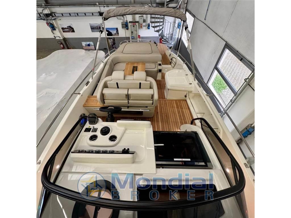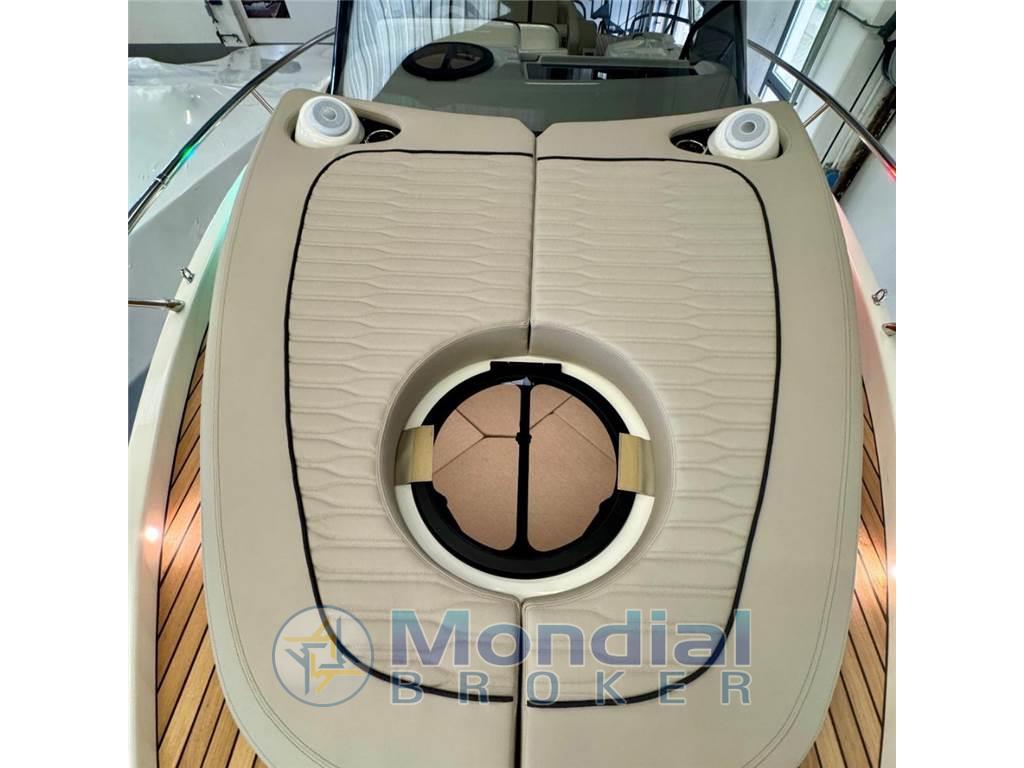 Barca sportiva e di carattere, grandi spazi prendisole a prua e poppa, dinette comoda e consolle di guida accattivante,barca già configurata.