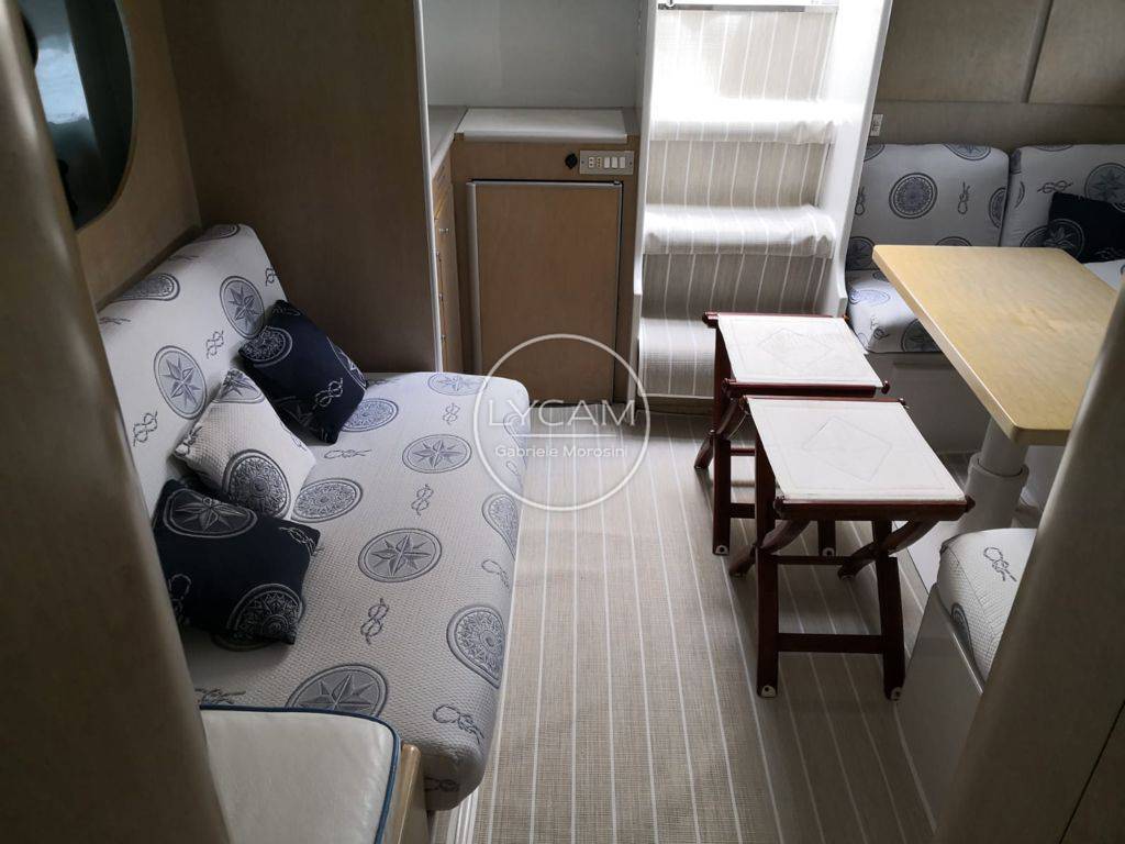Sottocoperta: Cabina armatoriale con letto matrimoniale; bagno separato con wc e doccia; dinette trasformabile in letto matrimoniale; angolo cucina attrezzato.