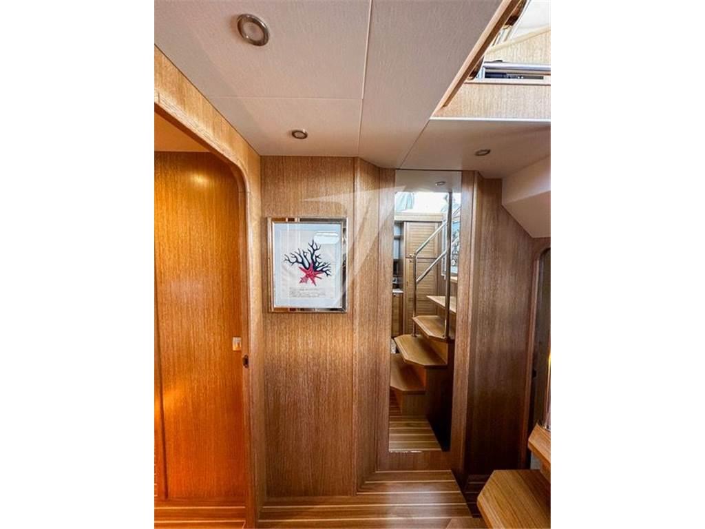 Ancora (Ultra Marine+upgrade catena), Autogonfiabile, Camminamenti laterali in teak, Elica di poppa - stern thruster, Elica di prua - bow thruster, Generatore a vento, Gruette, Luci di cortesia (interne ed esterne), Passerella (idraulica a scomparsa), Piattaforma (idraulica), Pompa di sentina elettrica, Pompa di sentina manuale, Pozzetto Teak, Presa 220V banchina, Scaletta da bagno, Stabilizzatori (Seakeeper).