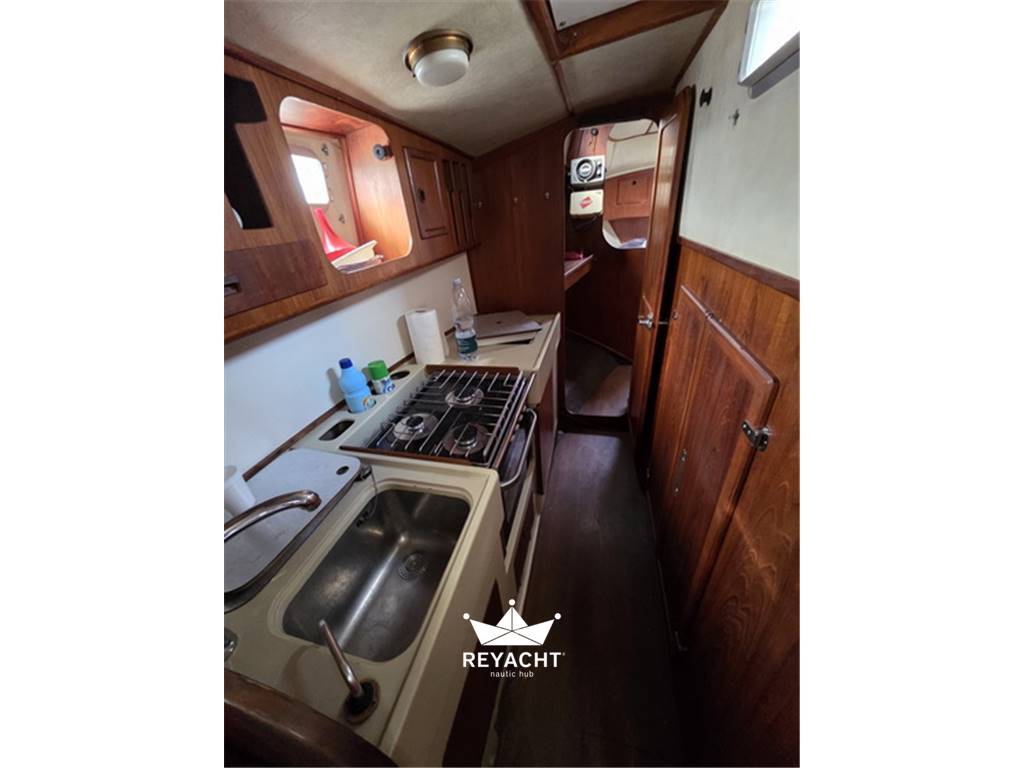 Gli interni originali S&S, aggiornati di recente, offrono un layout razionale con cucina completa (forno a gas Can, lavello inox), sky bianco alle pareti e paglioli in teak compensato, perfetti per lunghe navigazioni. Scafo in VTR rinforzato senza osmosi, pozzetto in teak protetto e plancia comandi completa con timone a ruota o barra d'emergenza. Il motore Nanni 240 diesel da 71 HP garantisce motopropulsione affidabile, mentre il ketch rig facilita la gestione anche da soli. Refit 2023 con vele nuove Elvström (randa, genoa, mezzana - fatture Pyxis disponibili) la rendono pronta all'uso immediato, con piano velico dettagliato e sistemazione interni ottimizzati per il comfort.