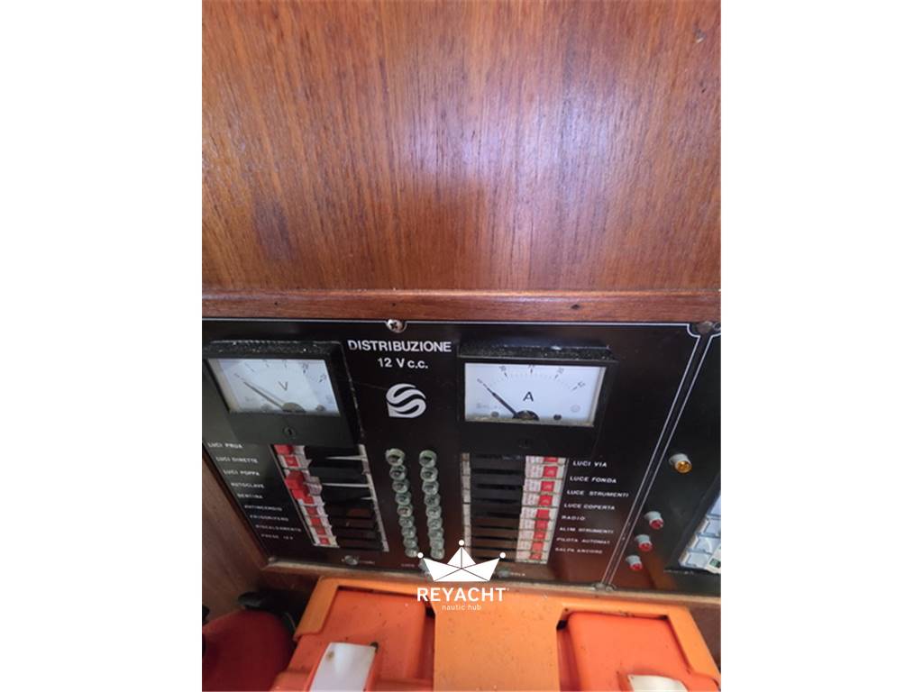 Lunghezza f.t. 11,40 m, larghezza 3,44 m, stazza lorda 11,80 t, motore entrobordo Nanni 240 (52,9 kW, 2.404 cm³, elica fissa), serbatoi acqua potabile 100 L + boiler 20 L, cassa acque nere presente, impianto elettrico 12/220V con caricabatterie BTE6 automatico e batterie dedicate (motore, servizi, prora). Armamento velico ketch: 2 alberi alluminio, winch Barbarossa (4x52 2 vel., 6 base), vang paranco, avvolgitor Harken fiocco. Sicurezza: certificato navigazione oltre 6 miglia scadenza 2027 (10 persone), VHF ITT STR 12, ecoscandaglio Seafarer 3, GPS Lorenz Excalibur 7. Refit 2023: vele Elvström nuove (randa 27,4 m², genoa 31,8 m², mezzana 11,9 m² approx.), interni/piano velico aggiornati. Stato conservazione buono, sale macchine/valvole da refresh minore. Documenti completi: libretto navigazione, fatture Pyxis.