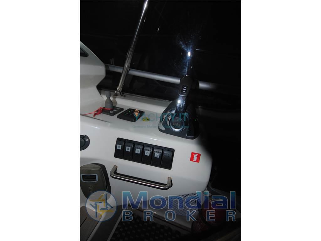 Allarme motore, Angolo barra, Autoclave, Batterie, Bussola, Camminamenti laterali in teak, Caricabatterie, Comando motori elettronico, Contamiglia, Ecoscandaglio, Elica di prua - bow thruster, Joystick, Lavandino nel Pozzetto, Piattaforma, Plotter con antenna GPS (Garmin), Pozzetto Teak, Radio VHF, Rollbar, Salpa Ancore Elettrico, Tavolo pozzetto