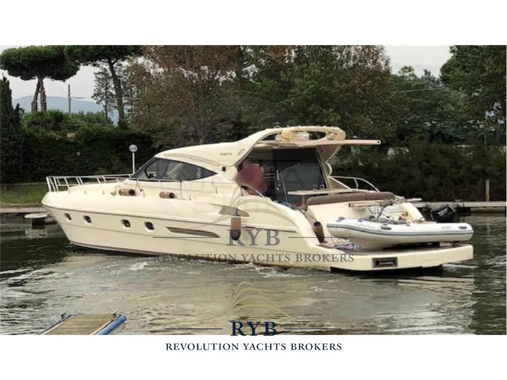 Gli spazi esterni comprendono una plancetta di poppa maggiorata con vano dedicato all’autogonfiabile, cuscineria completa e hard top elettrico apribile. Tra le dotazioni figurano gruppo elettrogeno, passerella idraulica, nuovo climatizzatore installato nel 2018, eliche sostituite nel 2024 e strumentazione elettronica di ultima generazione, tra cui Raymarine Axiom da 12 pollici, pilota automatico, radar, antenna TV e strumentazione motori completamente digitale.