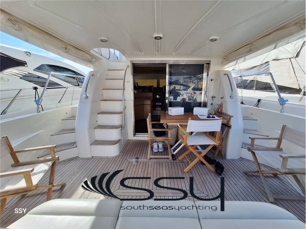 Imbarcazione con scafo bianco, pozzetto in teak e interni in rovere. Tutti gli ambienti sono rifiniti con parquet in wengè, mentre il salone è arredato con eleganti divani in pelle.